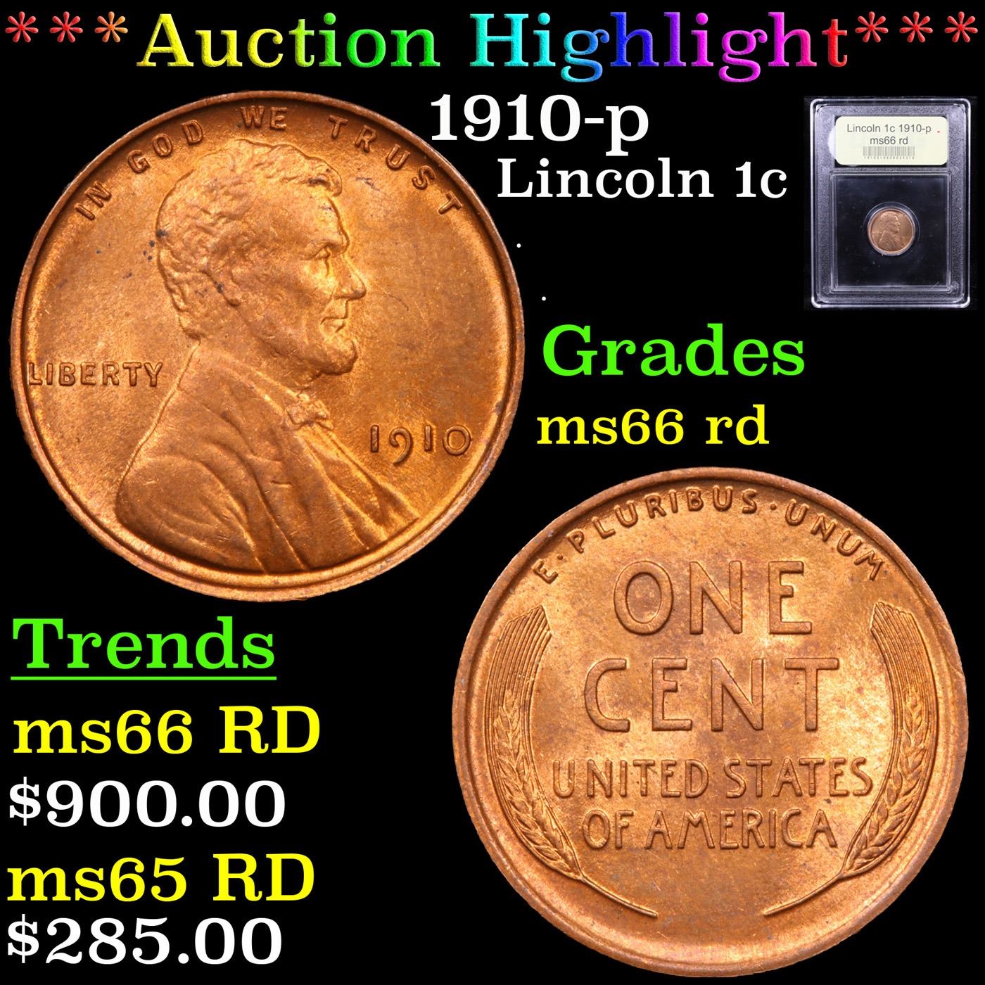 ***Auction Highlight*** 1910-p Lincoln Cent 1c Graded GEM+ Unc RD By USCG. A Corey's Pick, Bid to Win, Don't let it get Away Coin