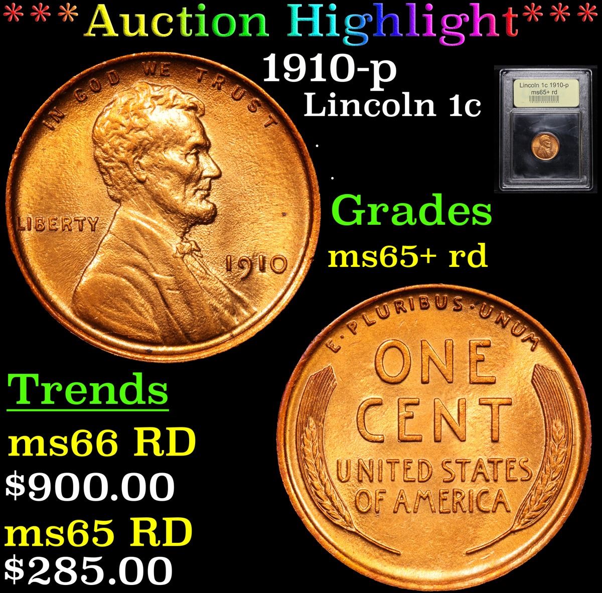 ***Auction Highlight*** 1910-p . . Lincoln Cent 1c Graded Gem+ Unc RD By USCG.