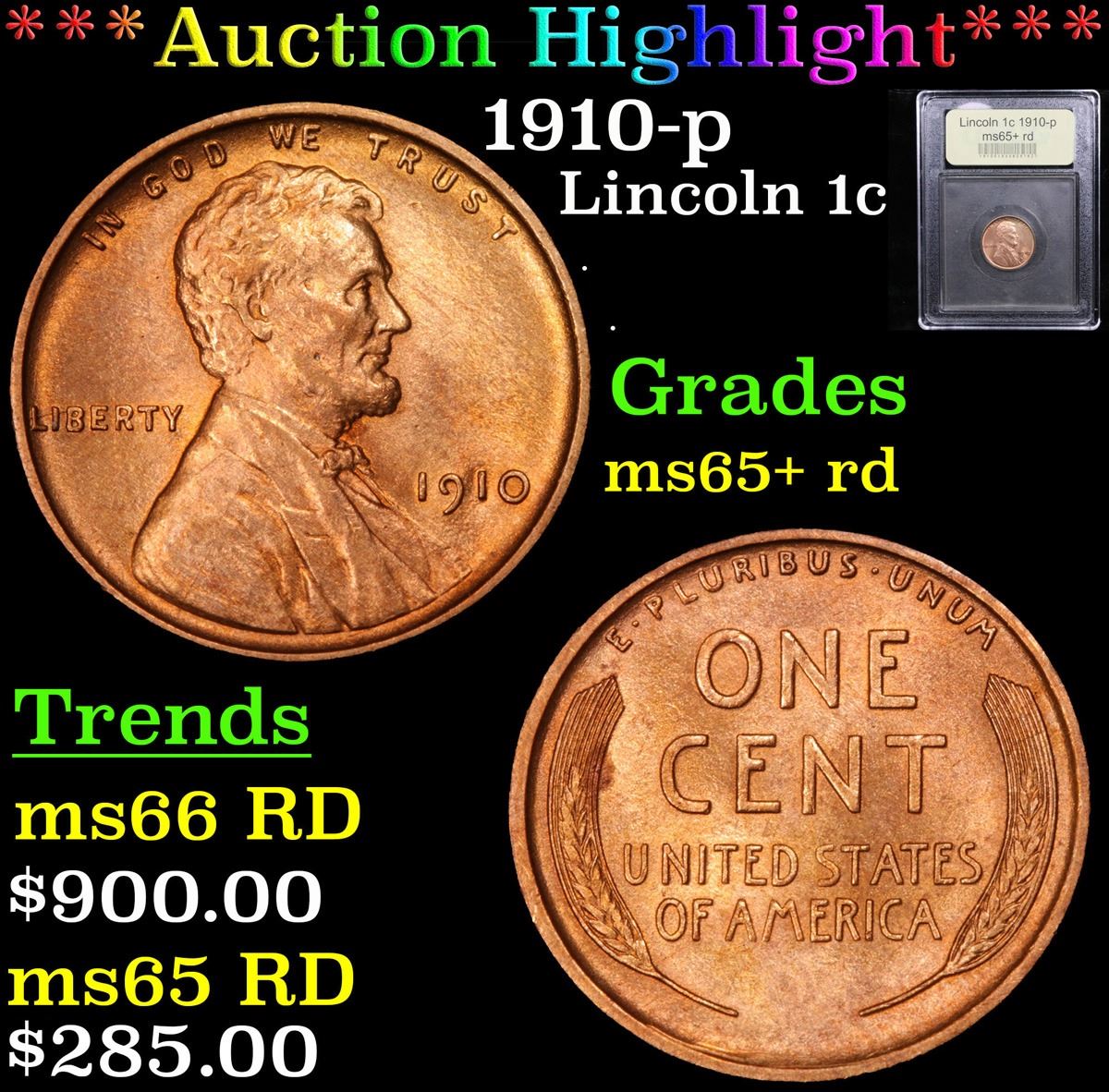 ***Auction Highlight*** 1910-p . . Lincoln Cent 1c Graded Gem+ Unc RD By USCG.         A Corey's Pick, Bid to Win Coin