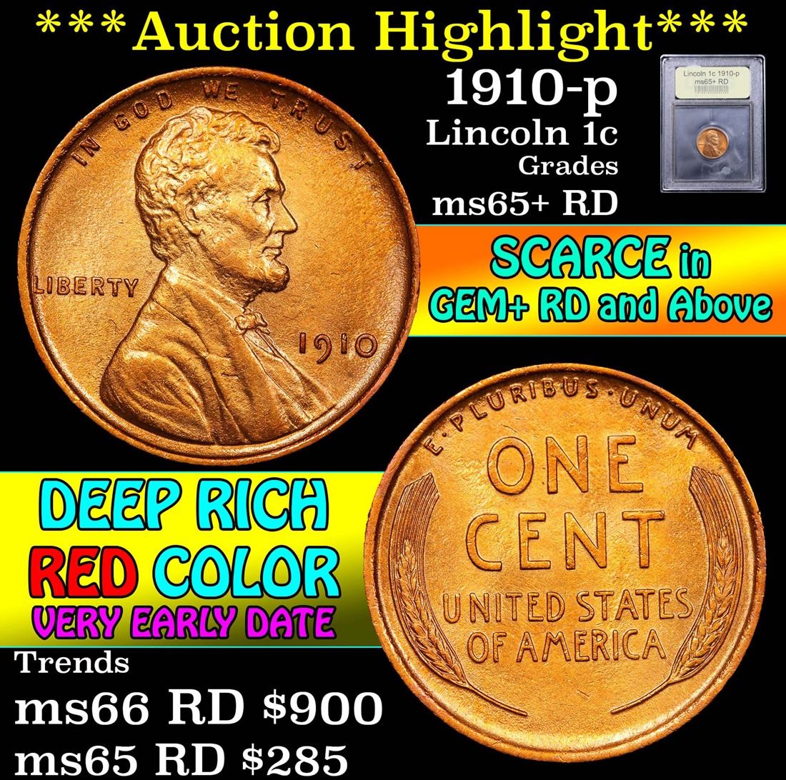 ***Auction Highlight*** 1910-p Lincoln Cent 1c Graded Gem+ Unc RD by USCG.