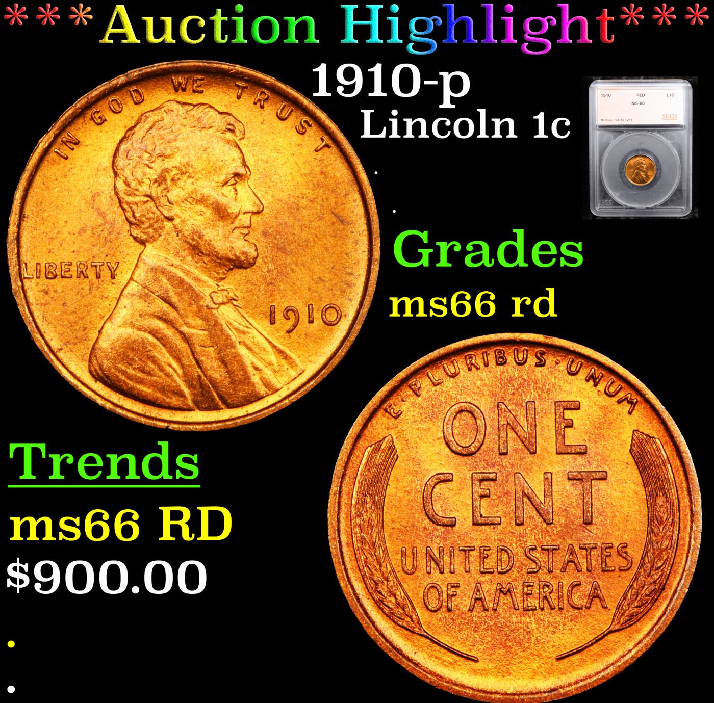 ***Auction Highlight*** 1910-p Lincoln Cent 1c Graded ms66 rd By SEGS. A Corey's Pick, Bid to Win, Don't let it get Away Coin