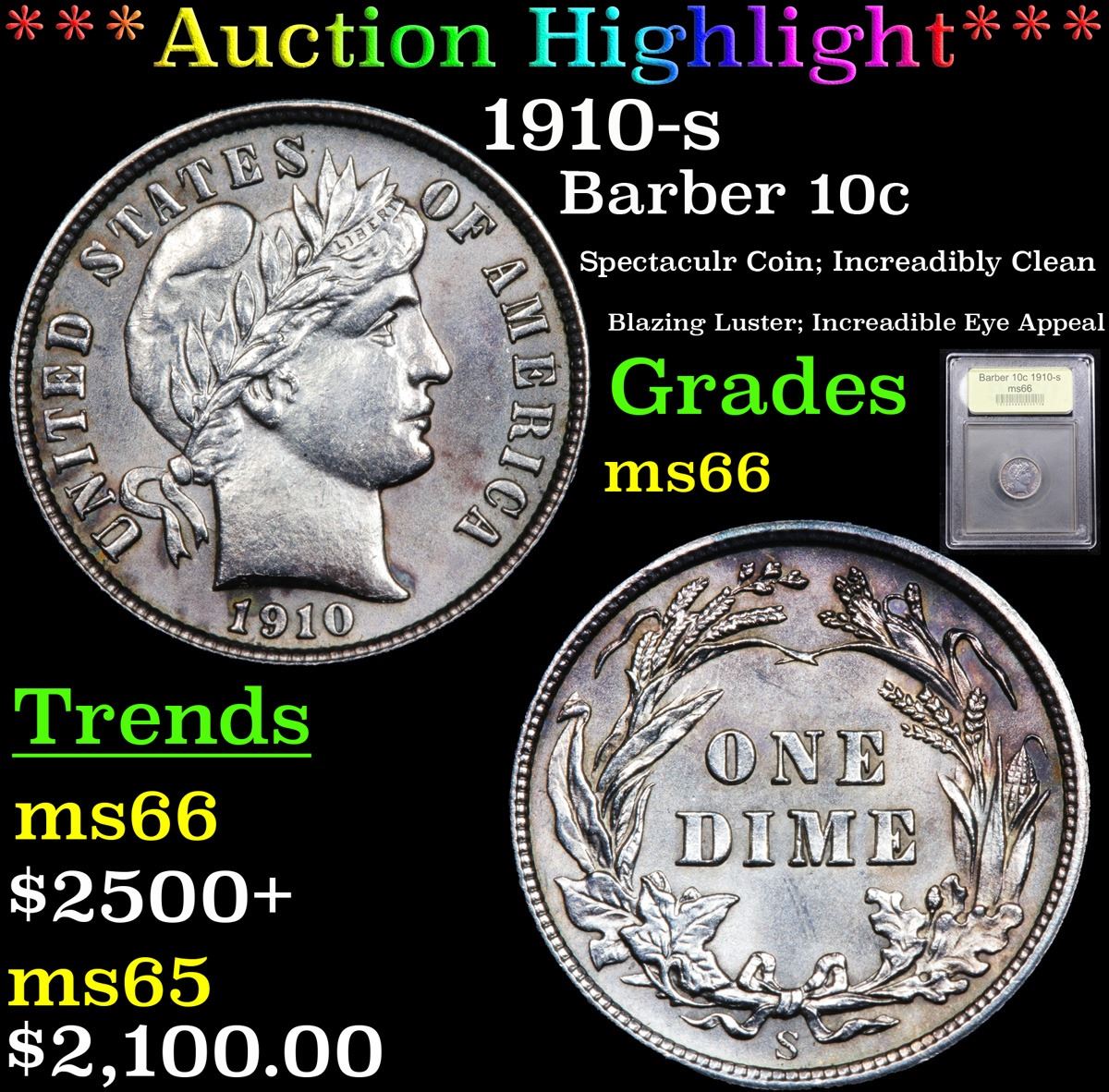 ***Auction Highlight*** 1910-s Barber Dime 10c Graded GEM+ Unc By USCG. A Corey's Pick, Bid to Win, Don't let it get Away, you might not find its equal Coin