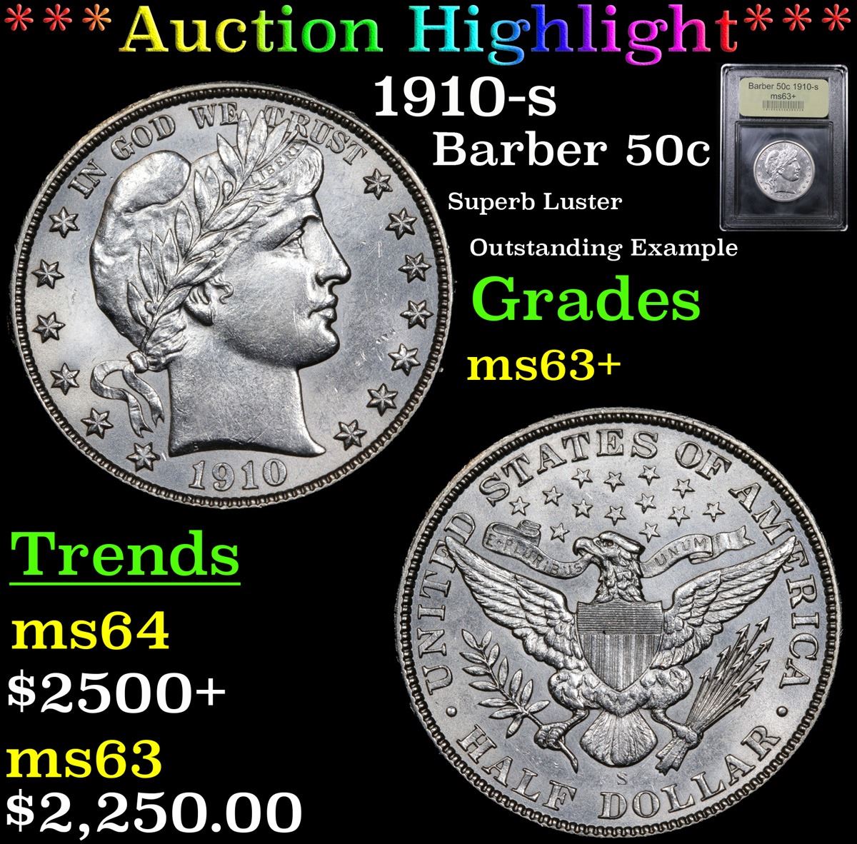 ***Auction Highlight*** 1910-s Superb Luster Outstanding Example Barber Half Dollars 50c Graded Select+ Unc By USCG. A Corey's Pick, Bid to Win Coin