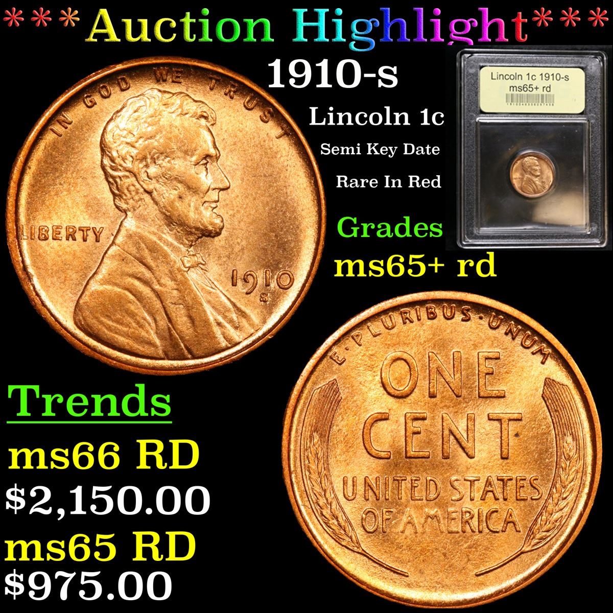 ***Auction Highlight*** 1910-s Semi Key Date Rare In Red . Lincoln Cent 1c Graded Gem+ Unc RD By USCG. Semi Key Date. Per David Hall of PCGS "The 1910-s has long been considered a semi-key date in circulated grades"