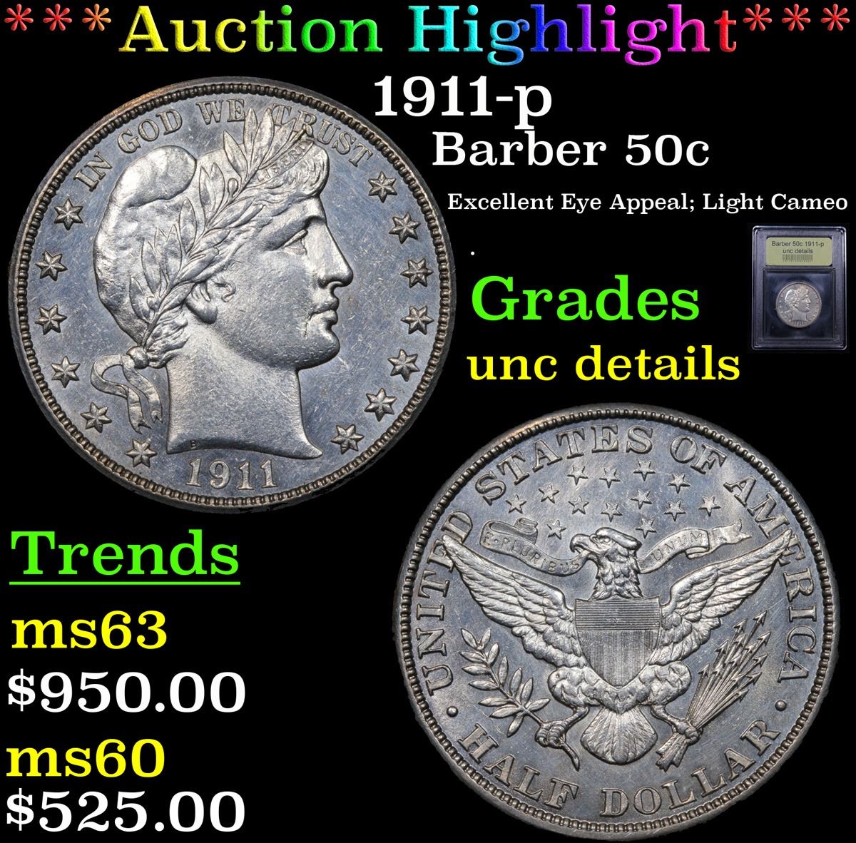 ***Auction Highlight*** 1911-p Barber Half Dollars 50c Graded Unc Details By USCG.