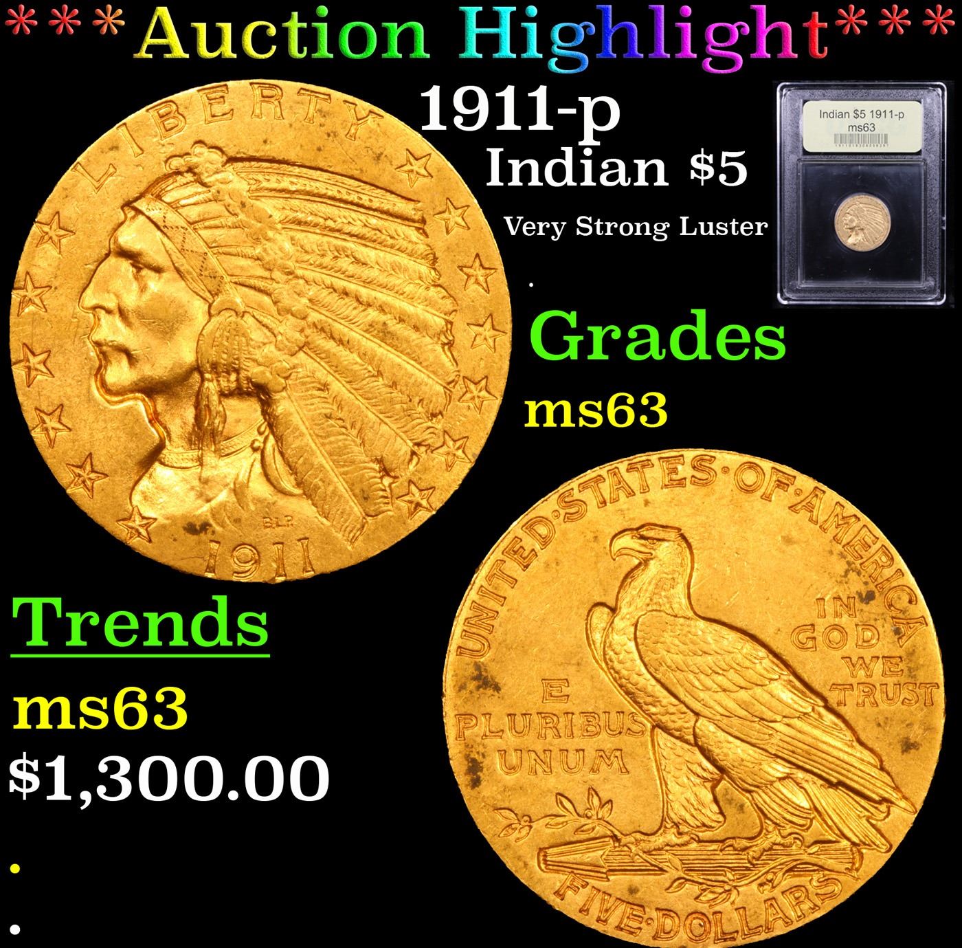 ***Auction Highlight*** 1911-p Gold Indian Half Eagle $5 Graded Select Unc By USCG. A Corey's Pick, Bid to Win Coin