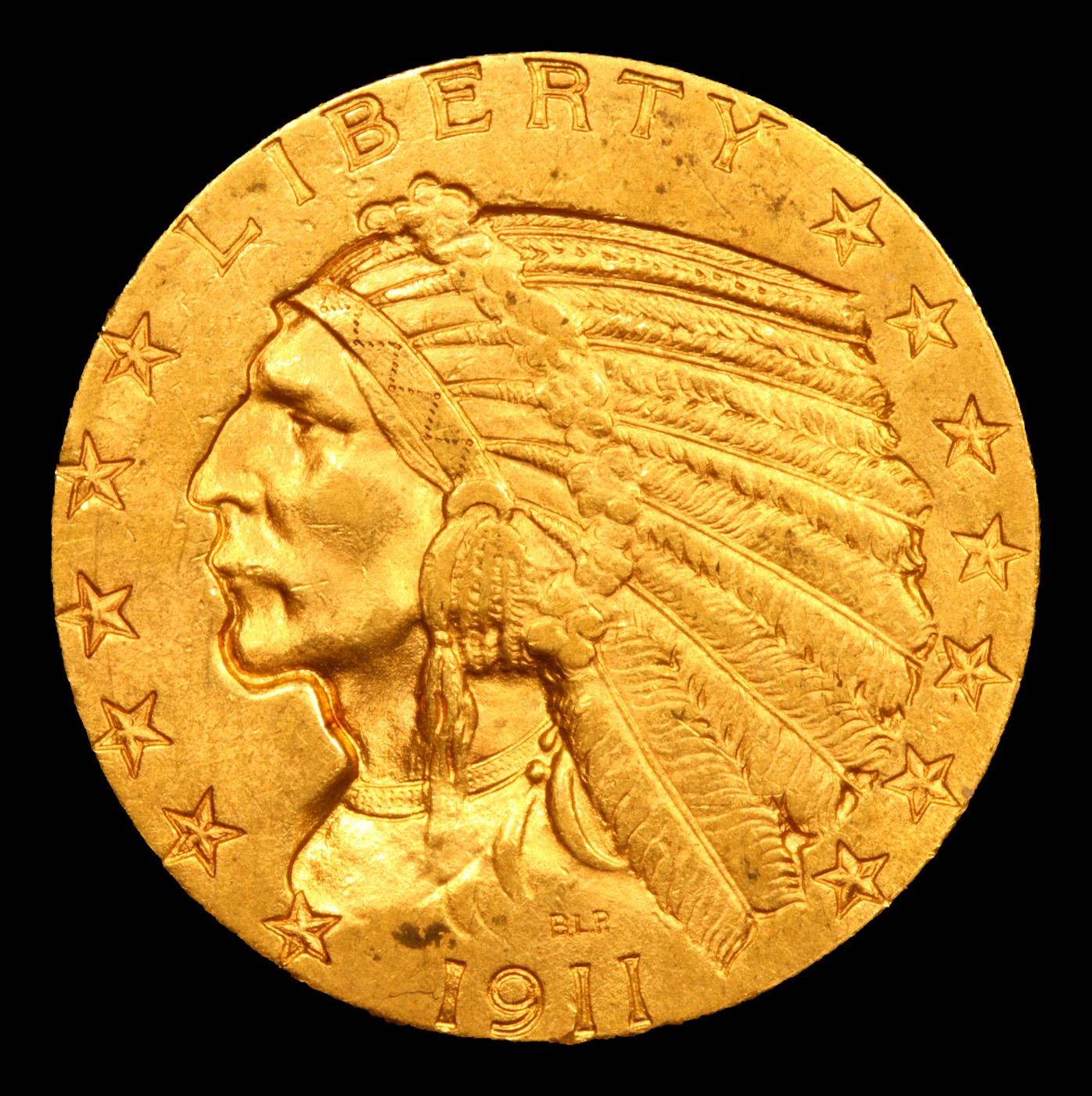 ***Auction Highlight*** 1911-p Gold Indian Half Eagle $5 Graded Select Unc By USCG (fc)
