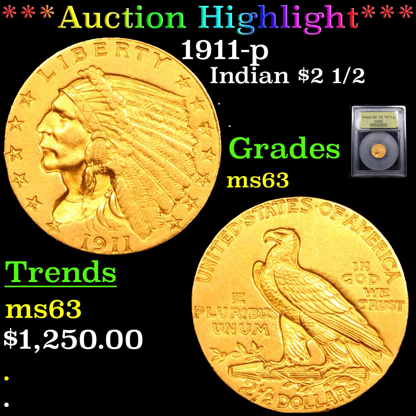 ***Auction Highlight*** 1911-p Gold Indian Quarter Eagle $2 1/2 Graded Select Unc BY USCG.