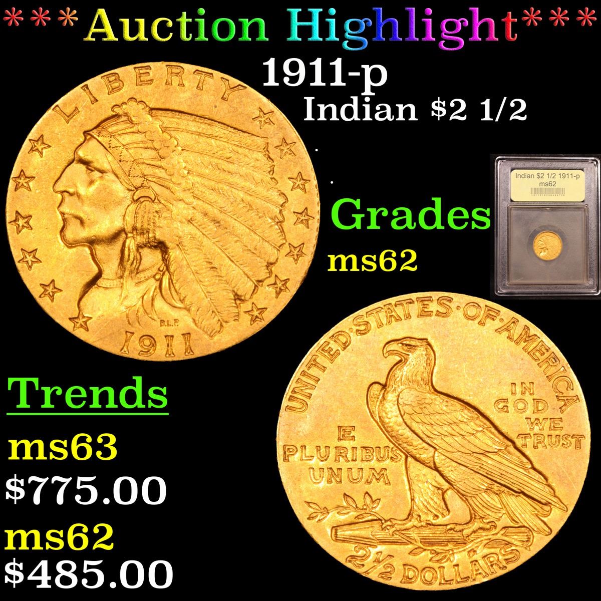 ***Auction Highlight*** 1911-p Gold Indian Quarter Eagle $2 1/2 Graded Select Unc By USCG (fc)