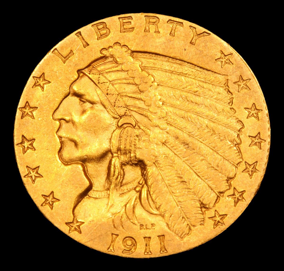 ***Auction Highlight*** 1911-p Gold Indian Quarter Eagle $2 1/2 Graded Select Unc By USCG.