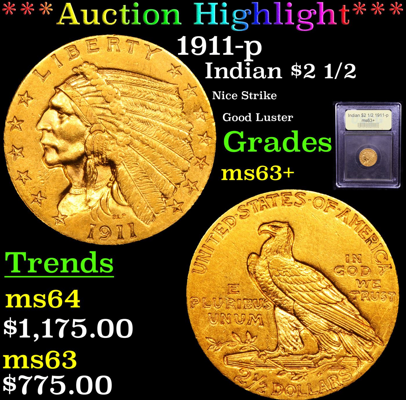 ***Auction Highlight*** 1911-p Gold Indian Quarter Eagle $2 1/2 Graded Select+ Unc By USCG. A Corey's Pick, Bid to Win Coin