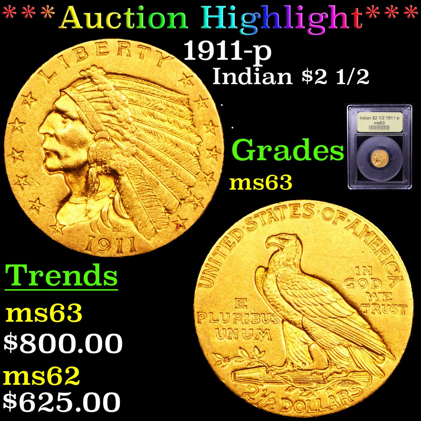 ***Auction Highlight*** 1911-p Gold Indian Quarter Eagle $2 1/2 Graded Select Unc By USCG.