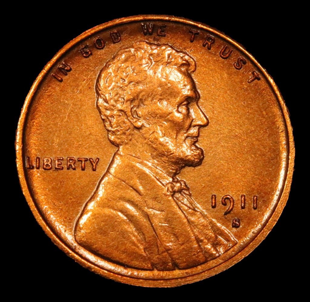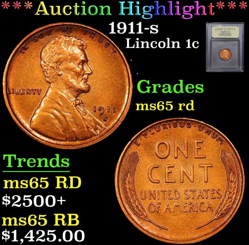 ***Auction Highlight*** 1911-s Lincoln Cent 1c Graded GEM Unc RD By USCG. Semi Key Date Rare In Red Great Gem Example Incredibly scarce date. PCGS estimates that out of an original mintage of over 4 million coins struck, only 900 remain in all grades.