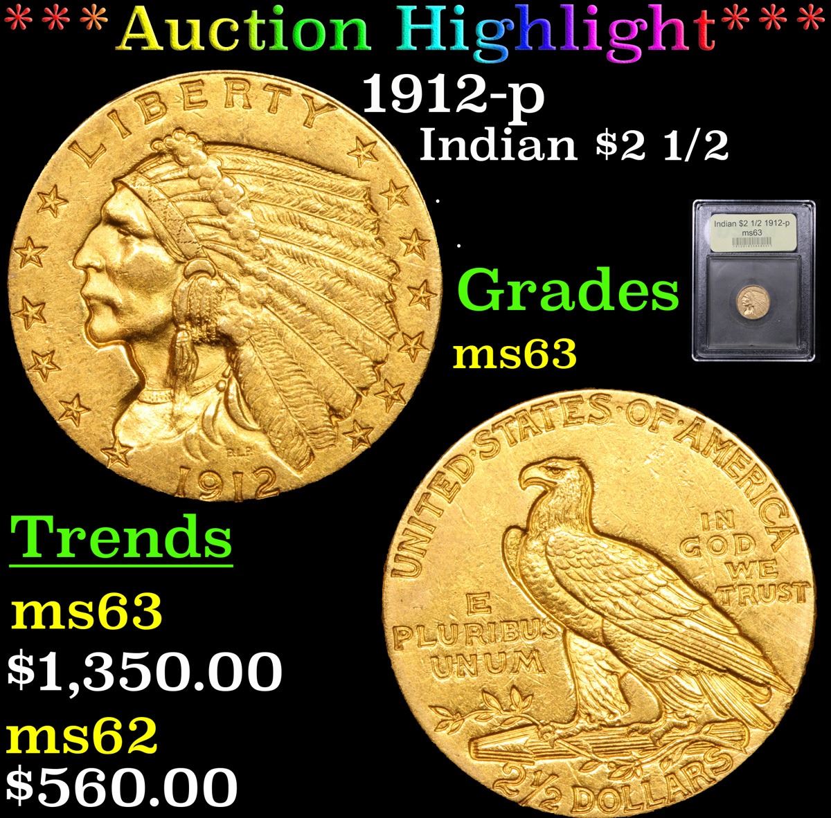 ***Auction Highlight*** 1912-p . . Gold Indian Quarter Eagle $2 1/2 Graded Select Unc By USCG.