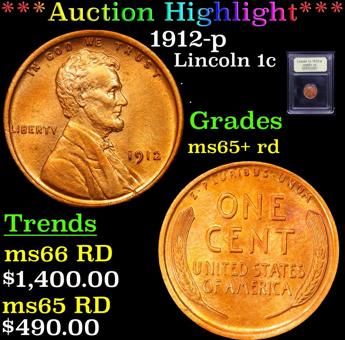 ***Auction Highlight*** 1912-p . . Lincoln Cent 1c Graded Gem+ Unc RD By USCG. A Corey's Pick, Bid to Win, Don't let it get Away Coin