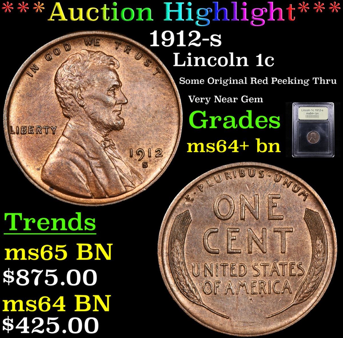 ***Auction Highlight*** 1912-s Lincoln Cent 1c Graded Choice+ Unc BN By USCG. According to David Hall from PCGS, 'The 1912-s, like all early s-mint Lincolns, is a scarce semi-key date in all grades. According to David Hall from PCGS, 'The 1912-s, like all early s-mint Lincolns, is a scarce semi-key date in all grades.