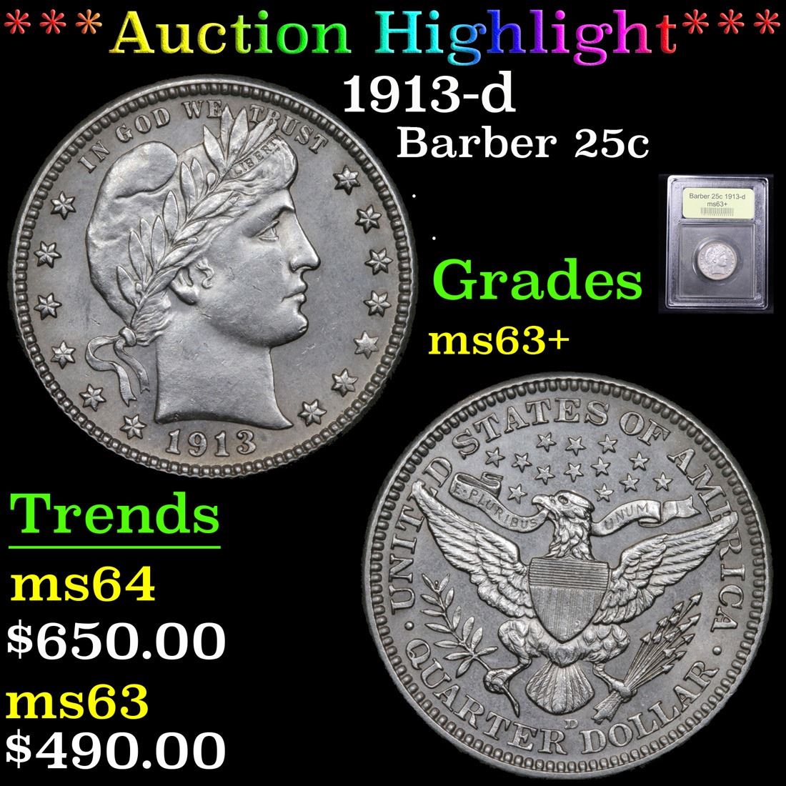 ***Auction Highlight*** 1913-d . . Barber Quarter 25c Graded Select+ Unc By USCG.