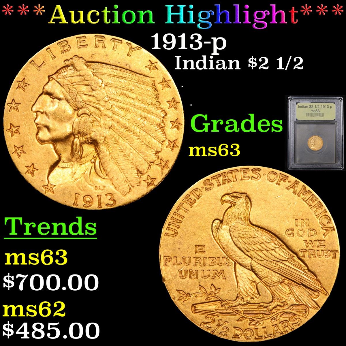 ***Auction Highlight*** 1913-p Gold Indian Quarter Eagle $2 1/2 Graded Select Unc By USCG. A Corey's Pick, Bid to Win Coin
