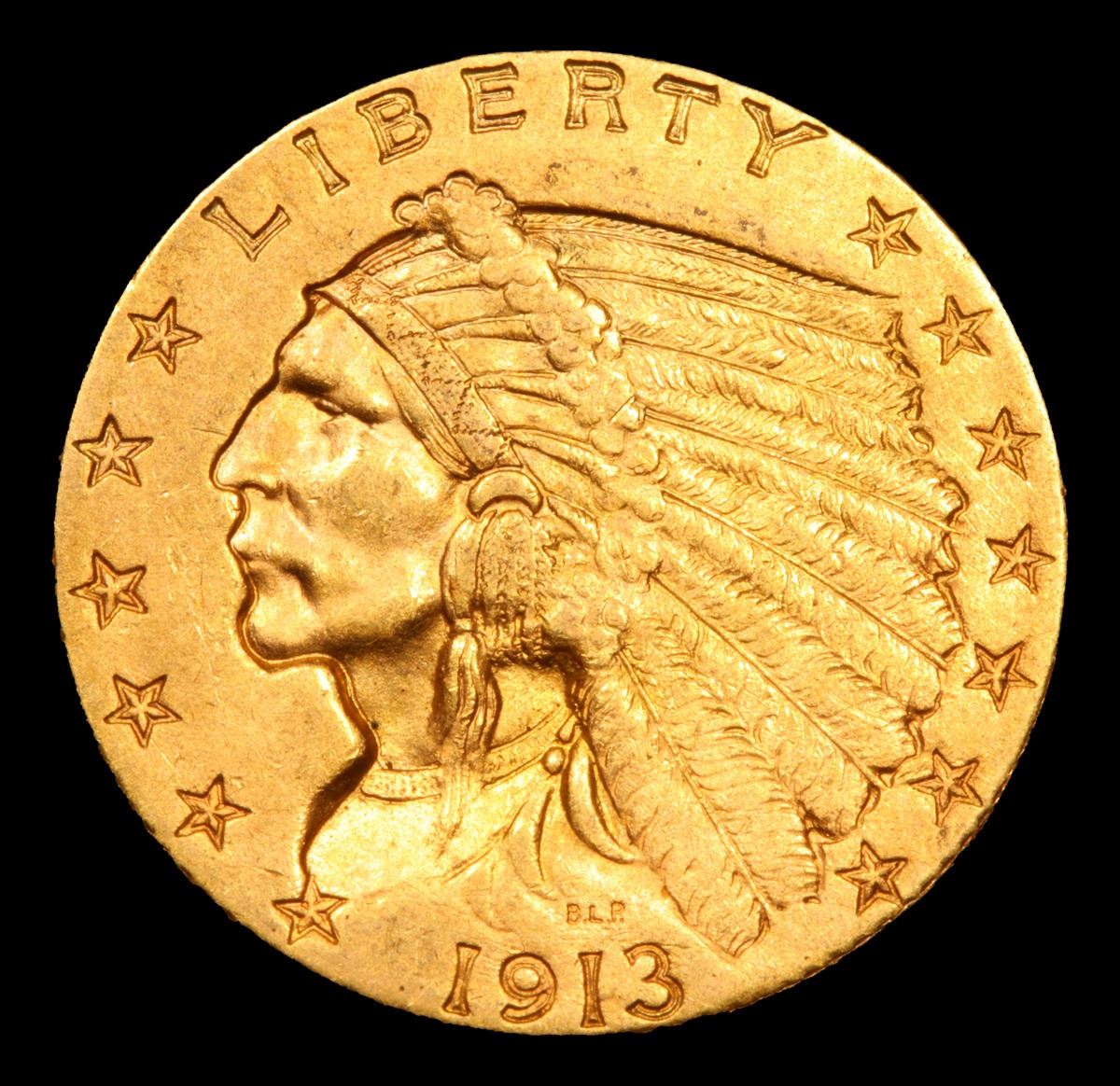 ***Auction Highlight*** 1913-p Gold Indian Quarter Eagle $2 1/2 Graded Select Unc By USCG (fc)