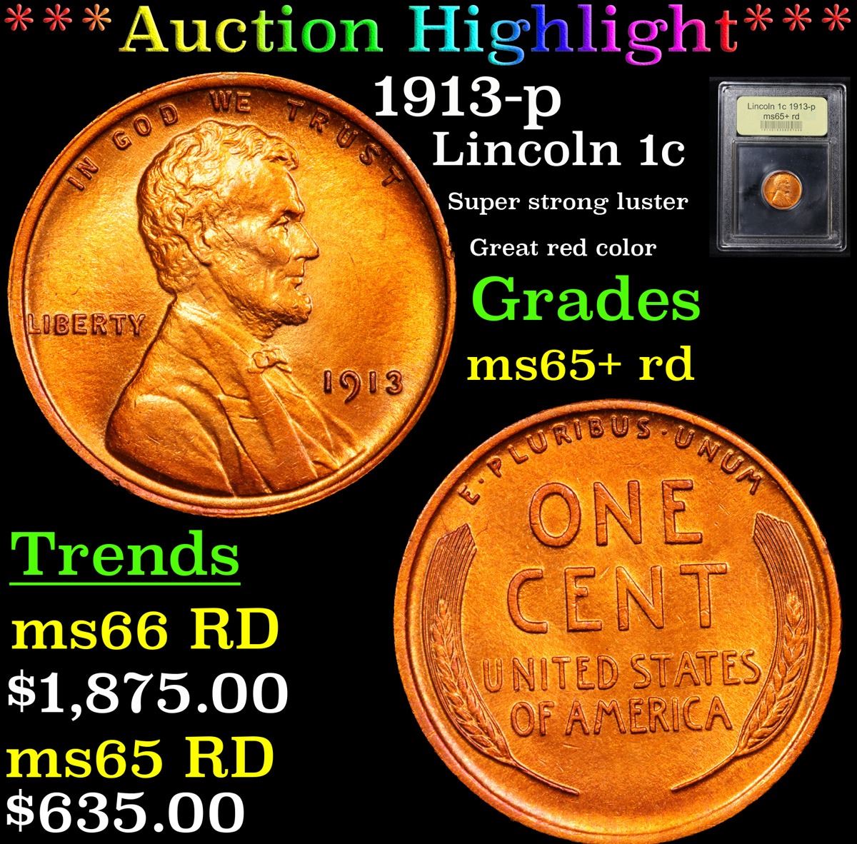 ***Auction Highlight*** 1913-p Super strong luster Great red color Lincoln Cent 1c Graded Gem+ Unc RD By USCG. A Corey's Pick, Bid to Win, Don't let it get Away Coin