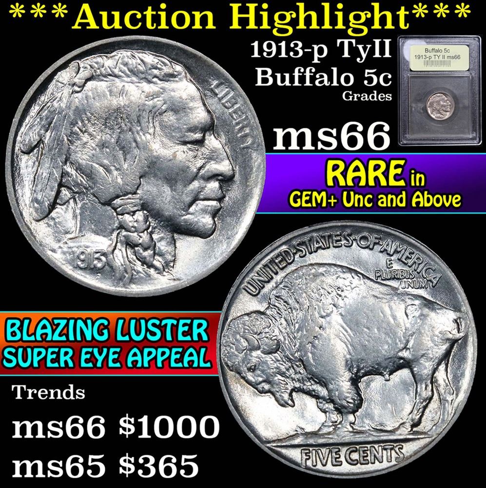 ***Auction Highlight*** 1913-p TY II Buffalo Nickel 5c Graded GEM+ Unc by USCG. A Corey's Pick, Bid to Win Coin