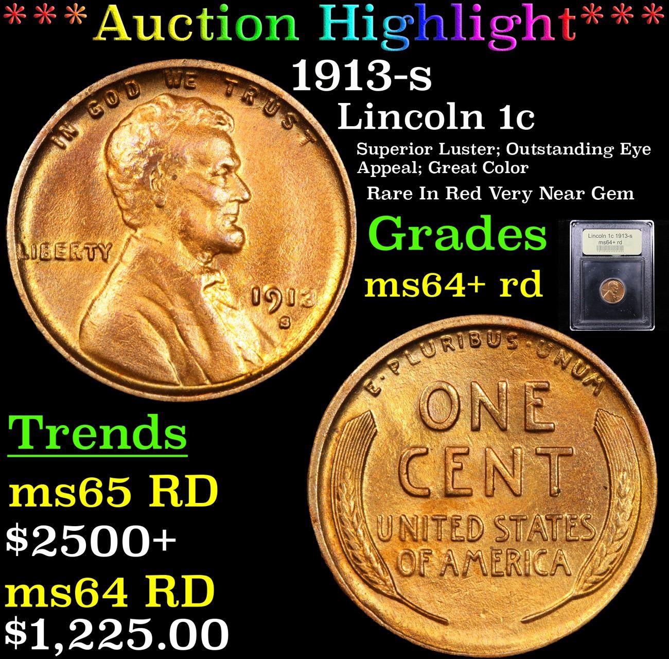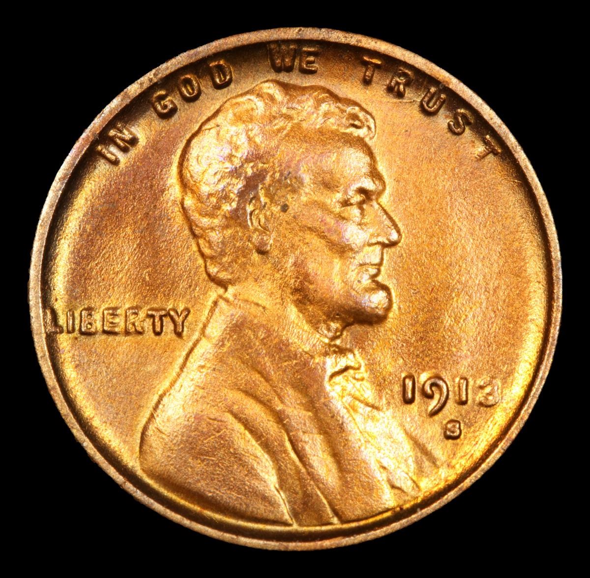 ***Auction Highlight*** 1913-s Superior Luster; Outstanding Eye Appeal; Great Color Rare In Red Very Near Gem Lincoln Cent 1c Graded Choice+ Unc RD By USCG. A Corey's Pick, Bid to Win, Don't let it get Away, you might not find its equal Coin