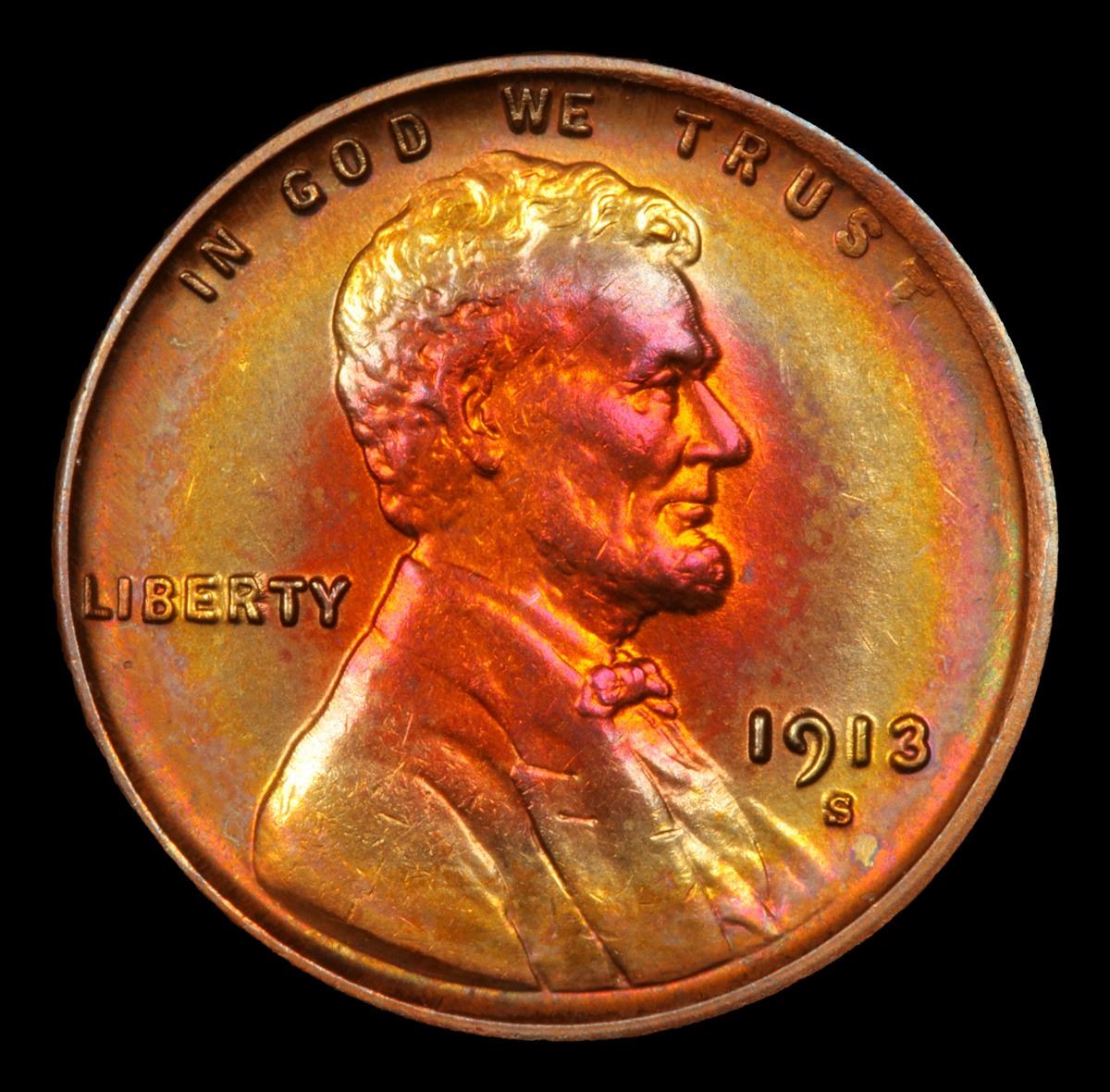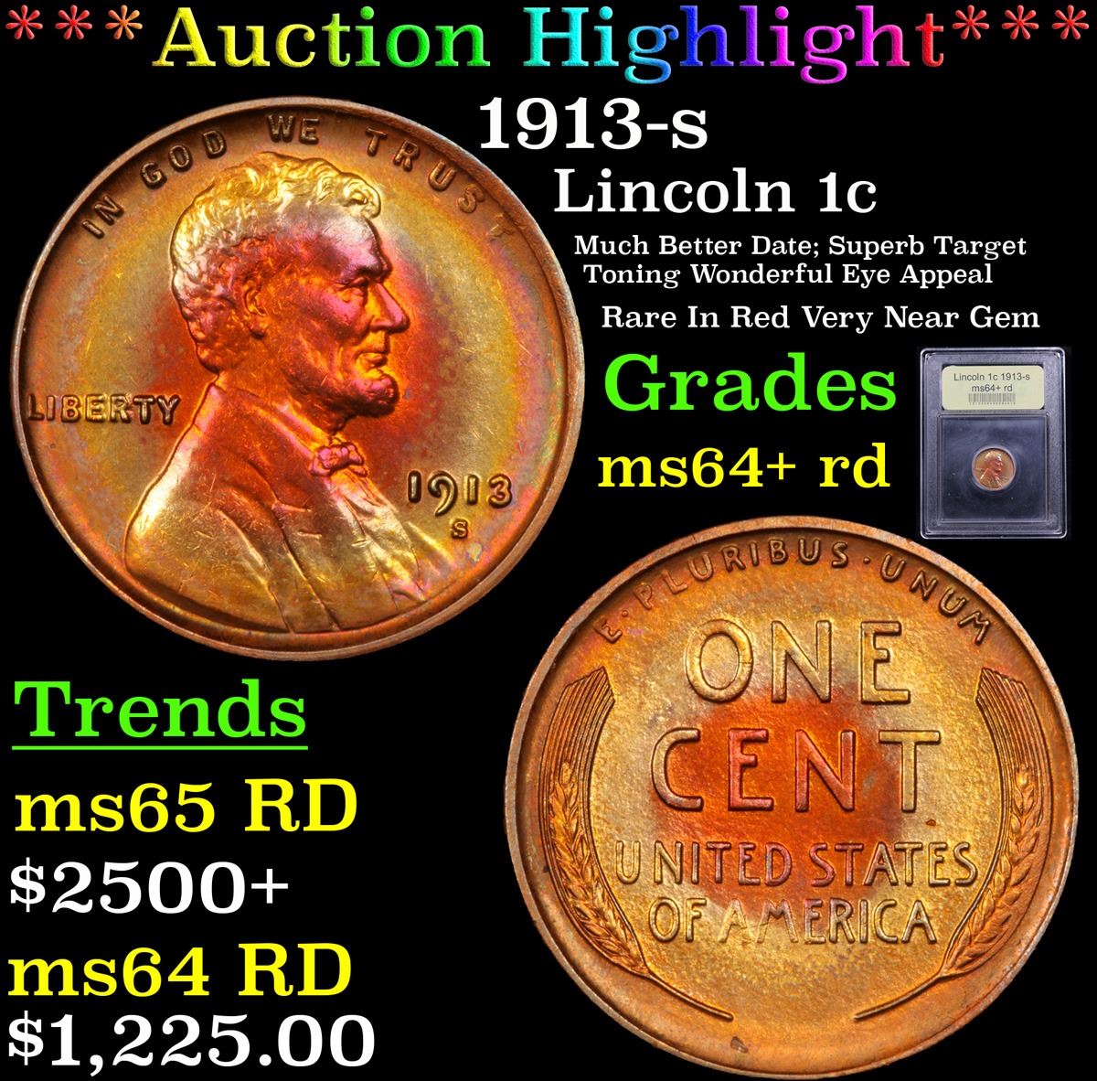 ***Auction Highlight*** 1913-s Lincoln Cent 1c Graded Choice+ Unc RD By USCG. 0