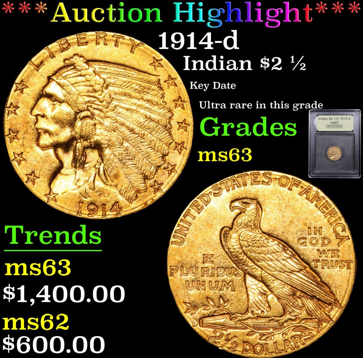 ***Auction Highlight*** 1914-d Key Date Ultra rare in this grade Gold Indian Quarter Eagle $2 1/2 Graded Select Unc By USCG. A Corey's Pick, Bid to Win, Don't let it get Away Coin