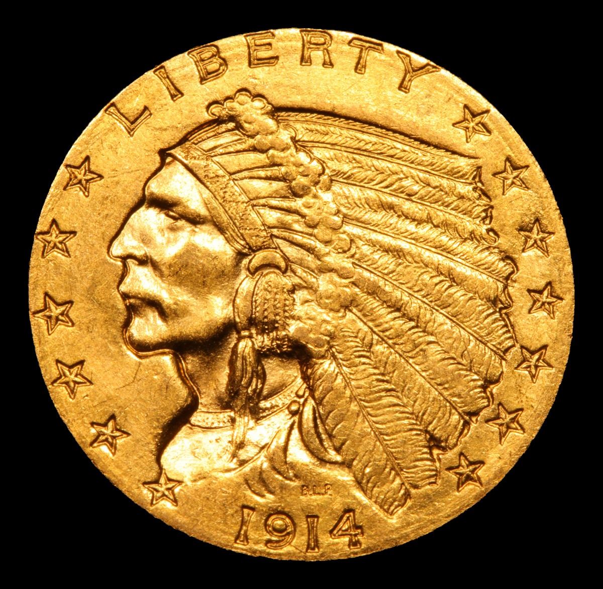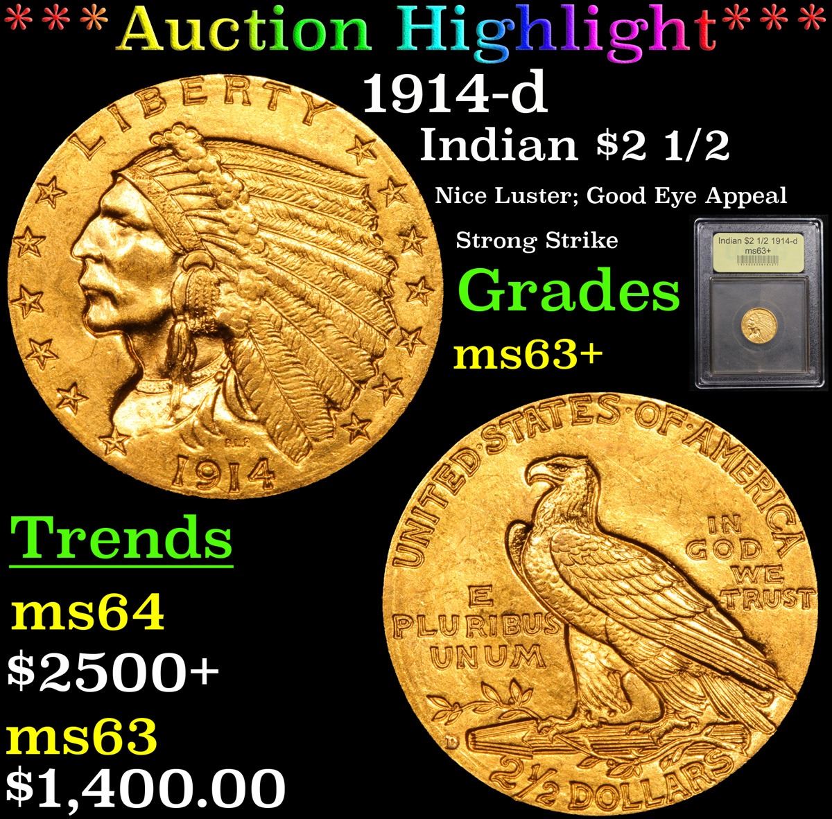 ***Auction Highlight*** 1914-d Gold Indian Quarter Eagle $2 1/2 Graded Select+ Unc By USCG (fc)