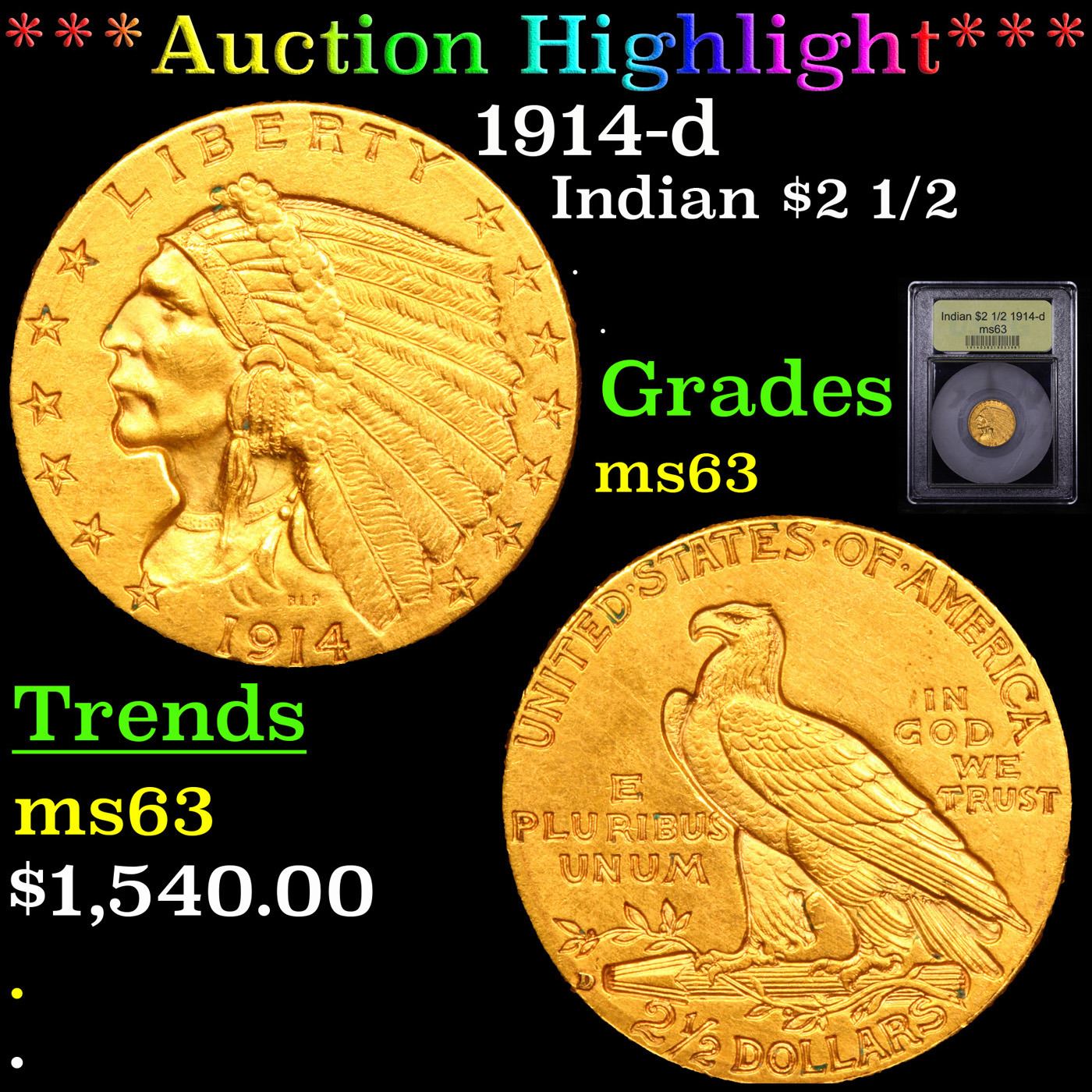 ***Auction Highlight*** 1914-d Gold Indian Quarter Eagle $2 1/2 Graded Select Unc By USCG.