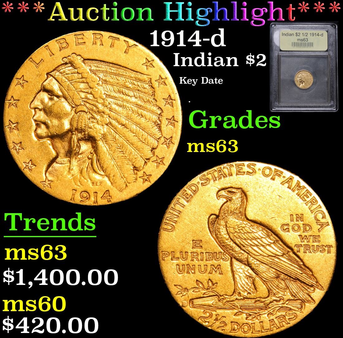 *Auction Highlight* 1914-d Key Date . Gold Indian $2 1/2 Graded Select Unc By USCG.