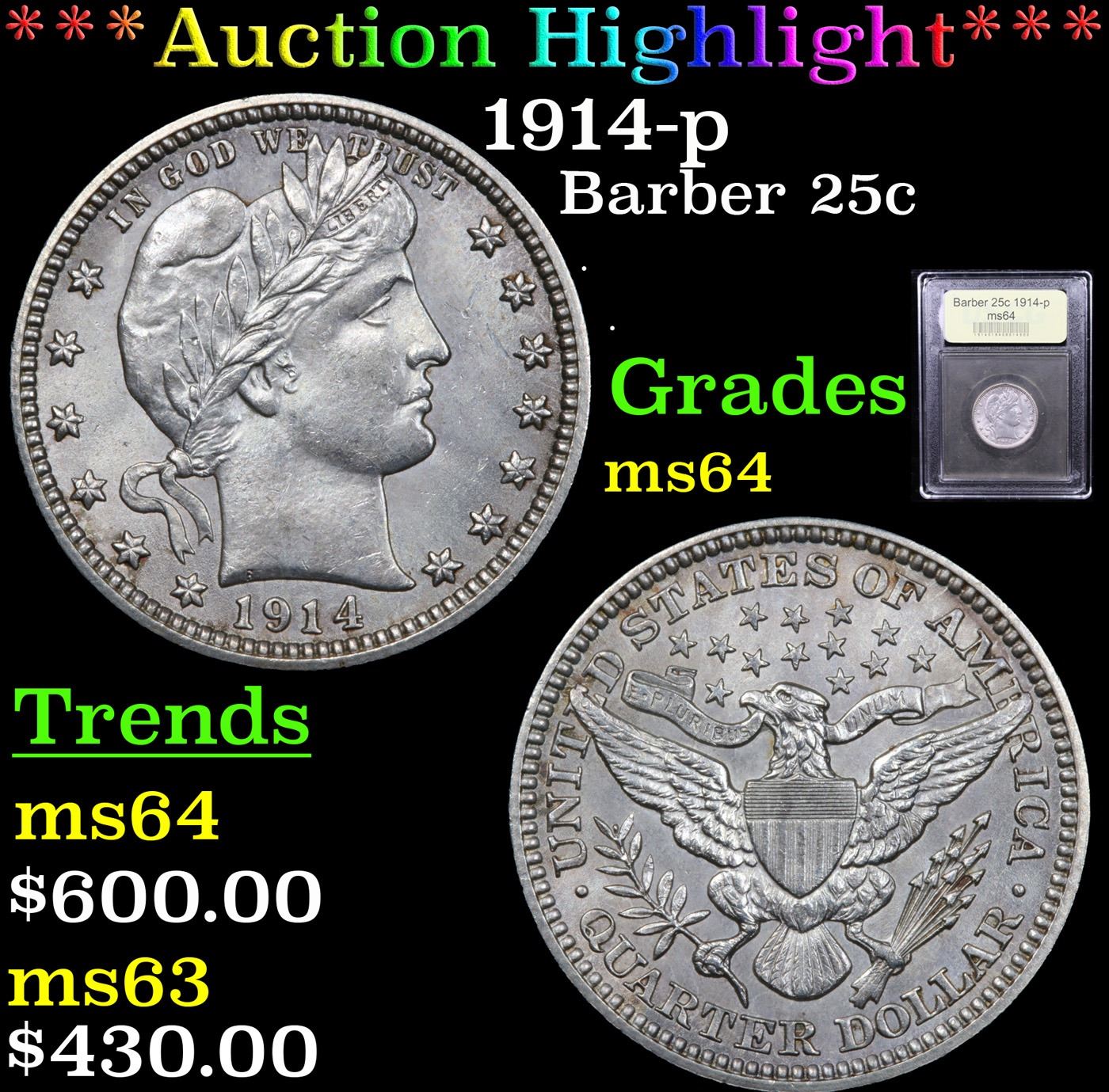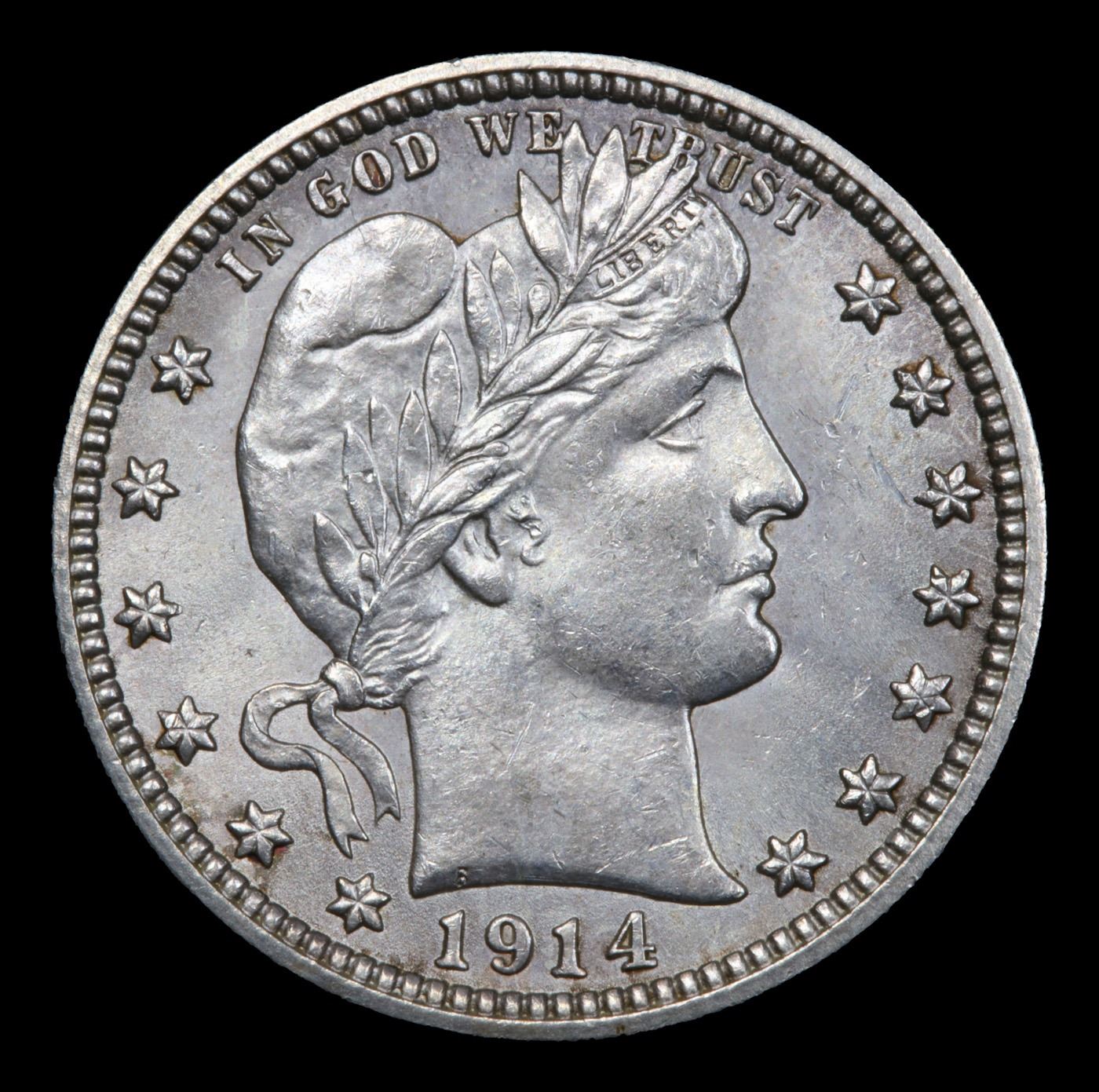 ***Auction Highlight*** 1914-p Barber Quarter 25c Graded Choice Unc By USCG. A Corey's Pick, Bid to Win Coin