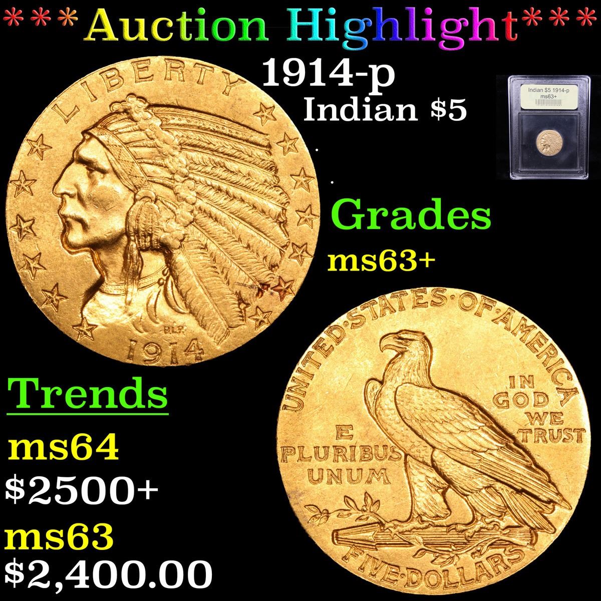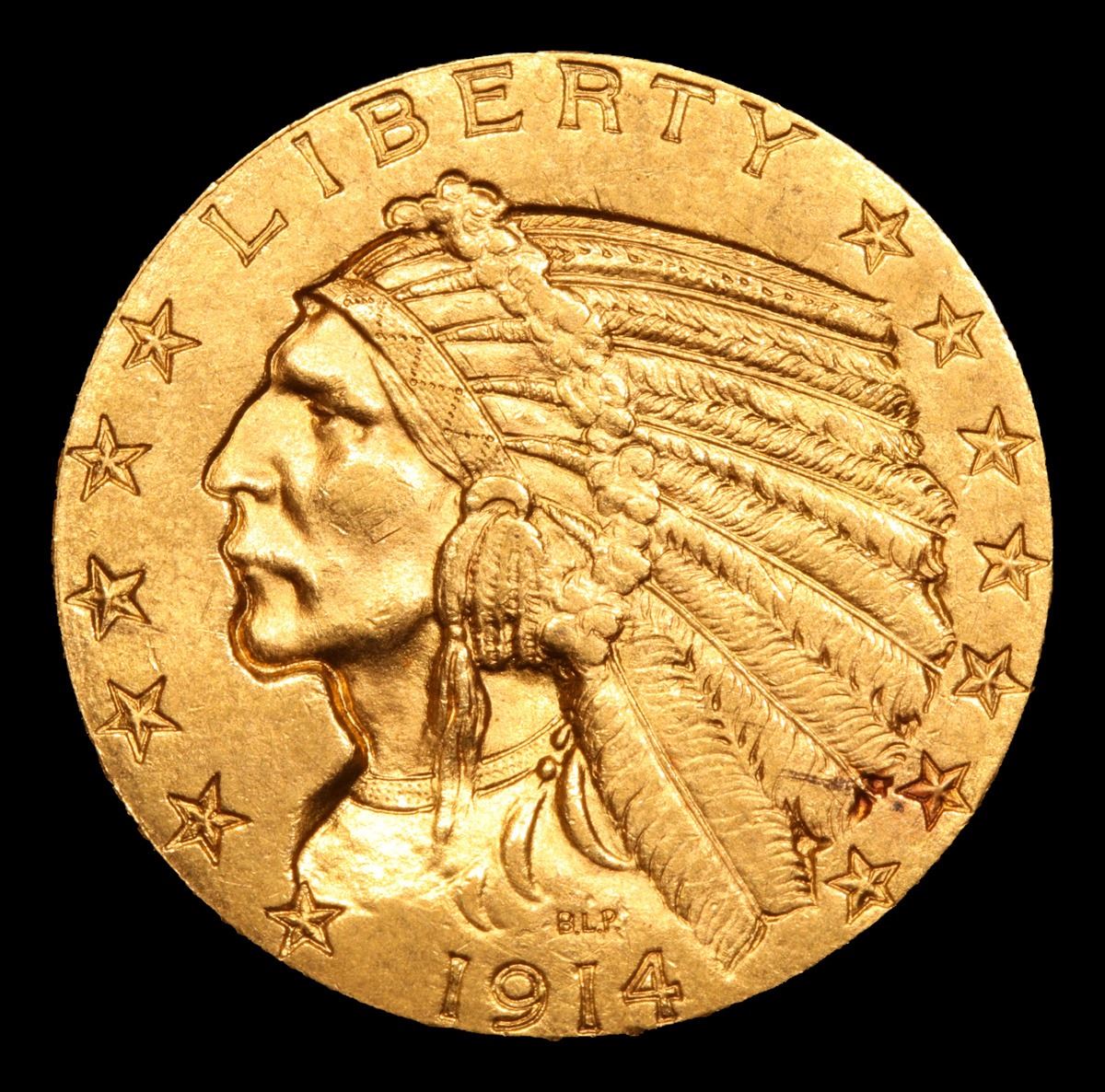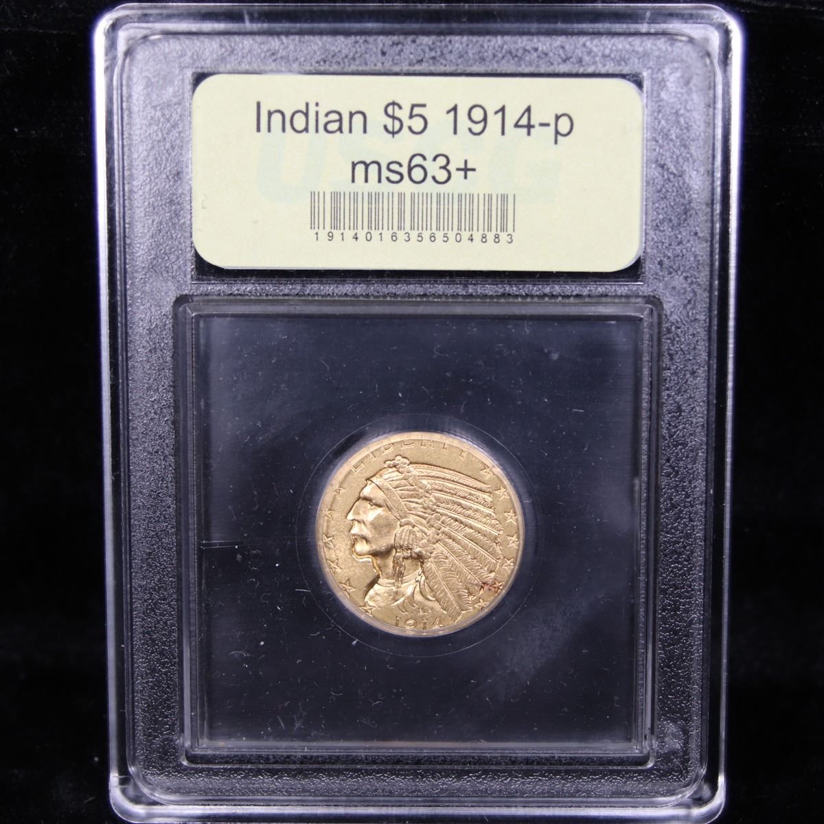 ***Auction Highlight*** 1914-p . . Gold Indian Half Eagle $5 Graded Select+ Unc By USCG.