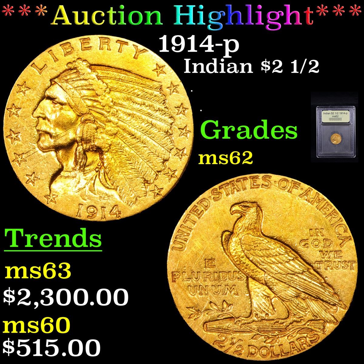 ***Auction Highlight*** 1914-p . . Gold Indian Quarter Eagle $2 1/2 Graded Select Unc By USCG.