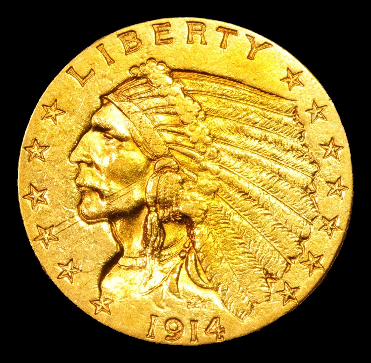 ***Auction Highlight*** 1914-p Gold Indian Quarter Eagle $2 1/2 Graded Select Unc By USCG (fc)