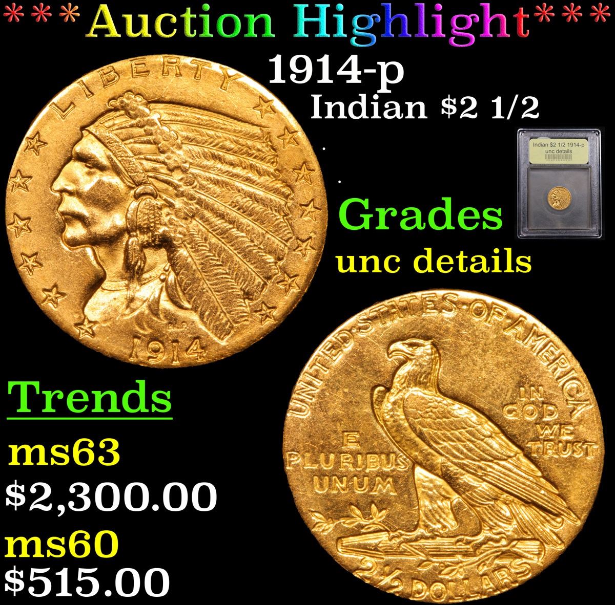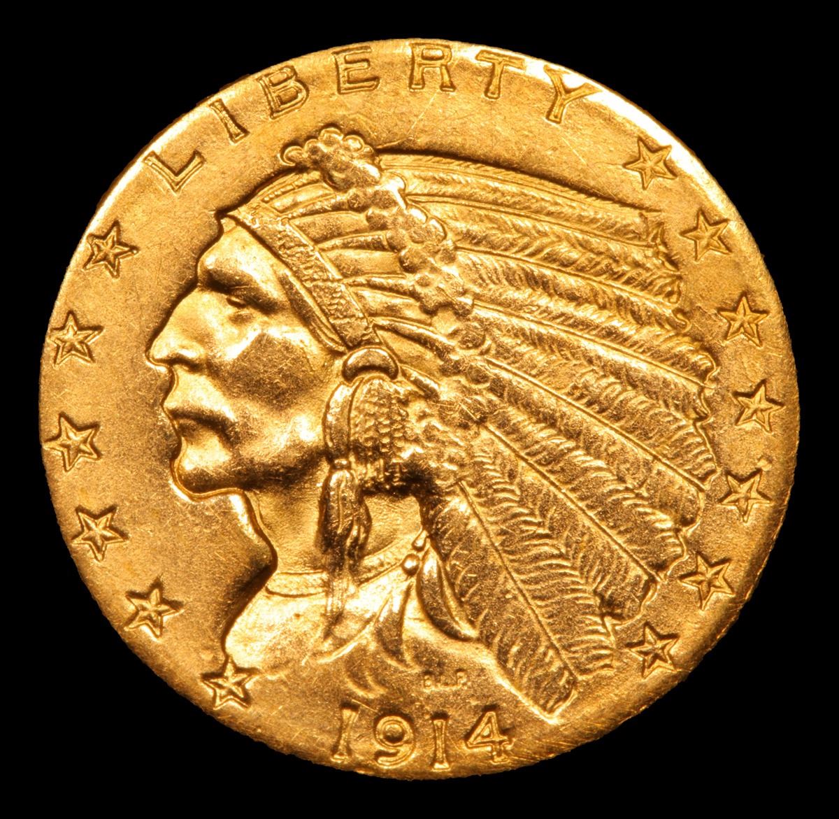 ***Auction Highlight*** 1914-p Gold Indian Quarter Eagle $2 1/2 Graded Unc Details By USCG (fc)
