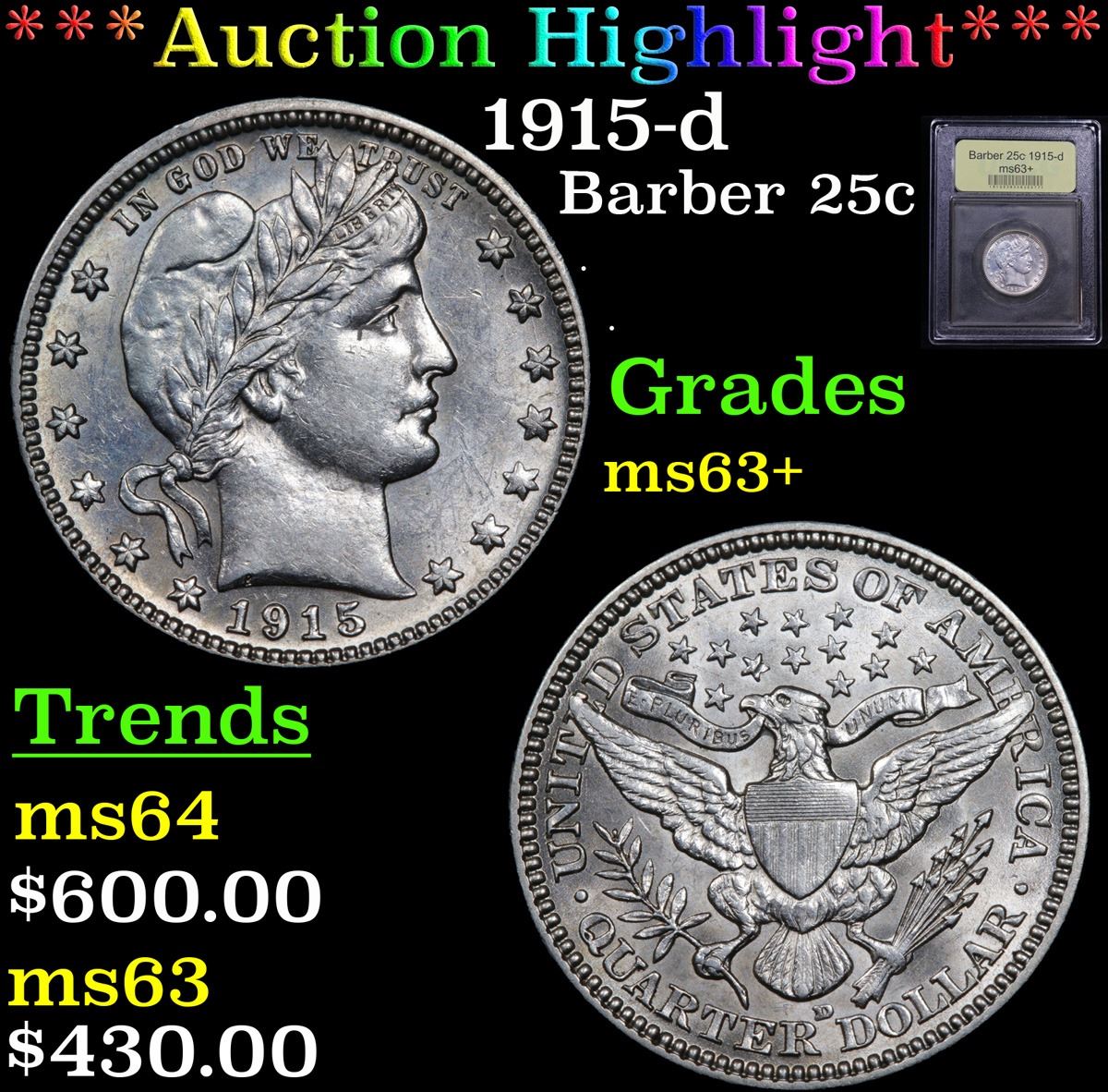 ***Auction Highlight*** 1915-d Barber Quarter 25c Graded Select+ Unc By USCG.