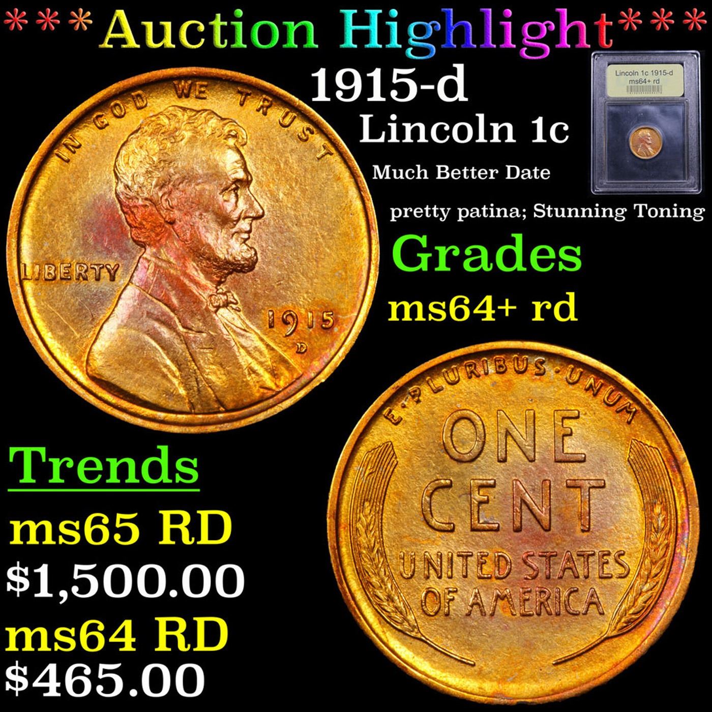 ***Auction Highlight*** 1915-d Lincoln Cent 1c Graded Choice+ Unc RD By USCG. Incredibly scarce date. Per David Hall at PCGS " Like the 1913-D, the 1915-D is a scarce and somewhat underrated semi-key date" A Corey's Pick, Bid to Win, Don't let it get Away Coin
