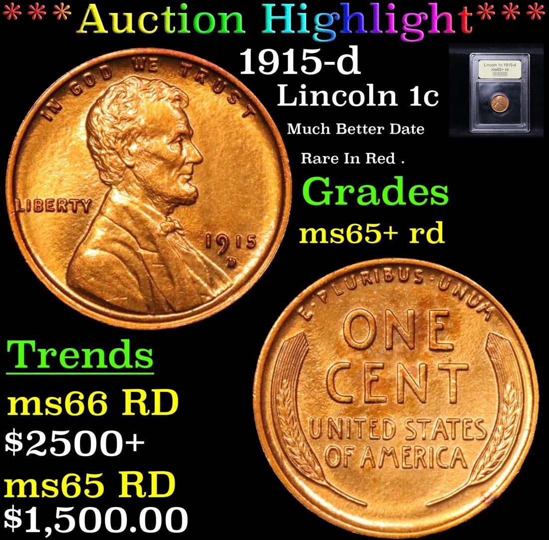***Auction Highlight*** 1915-d Much Better Date Rare In Red . Lincoln Cent 1c Graded Gem+ Unc RD By USCG. Incredibly scarce date. Per David Hall at PCGS " Like the 1913-D, the 1915-D is a scarce and somewhat underrated semi-key date" A Corey's Pick, Bid to Win, Don't let it get Away, you might not find its equal Coin