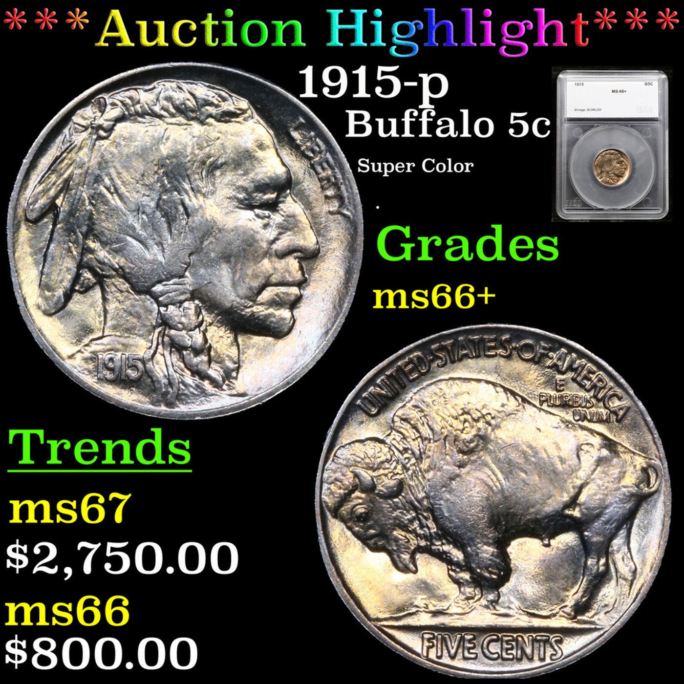 ***Auction Highlight*** 1915-p Buffalo Nickel 5c Graded ms66+ By SEGS. A Corey's Pick, Bid to Win, Don't let it get Away Coin