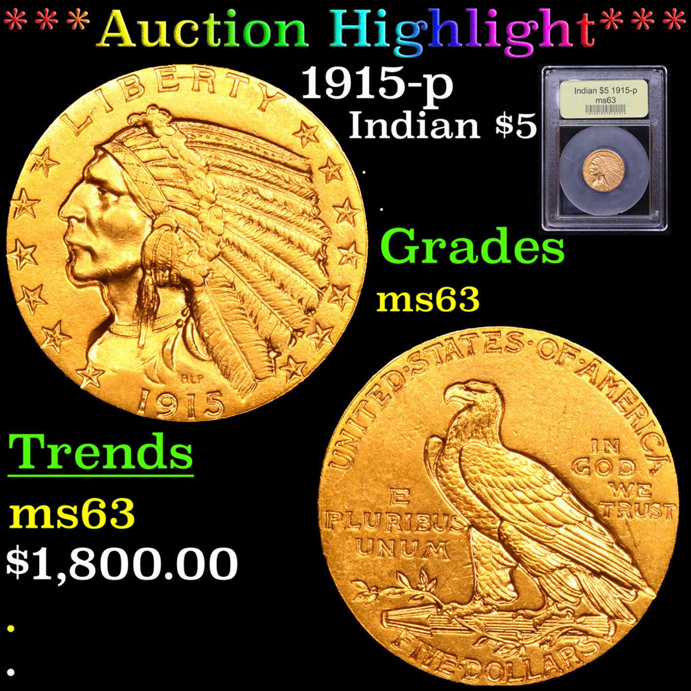 ***Auction Highlight*** 1915-p Gold Indian Half Eagle 5 Graded Select Unc By USCG.