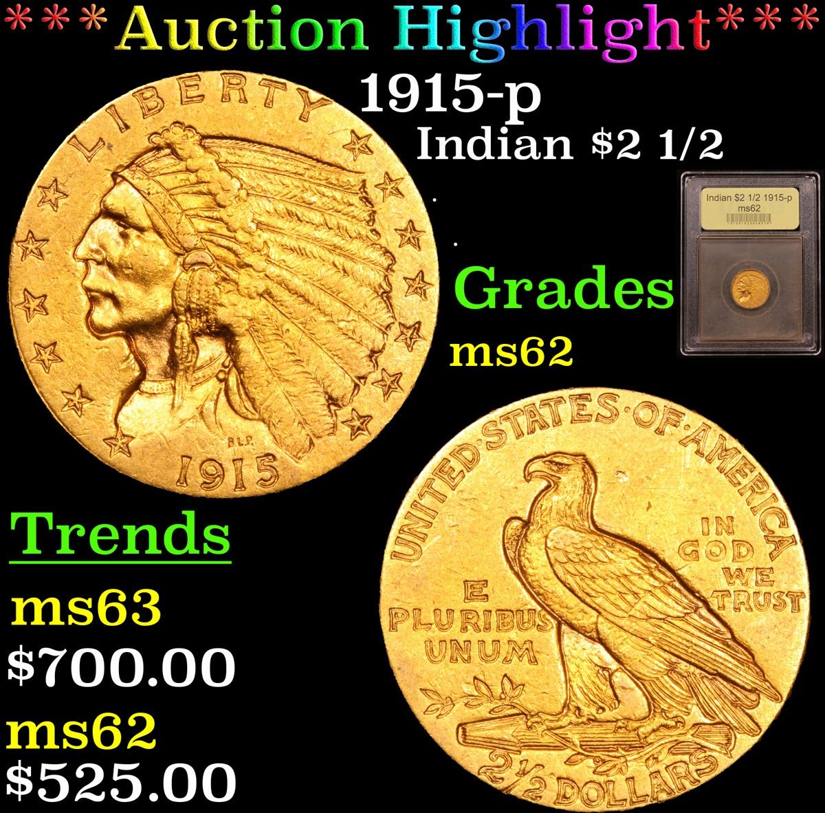 ***Auction Highlight*** 1915-p Gold Indian Quarter Eagle $2 1/2 Graded Select Unc By USCG (fc)