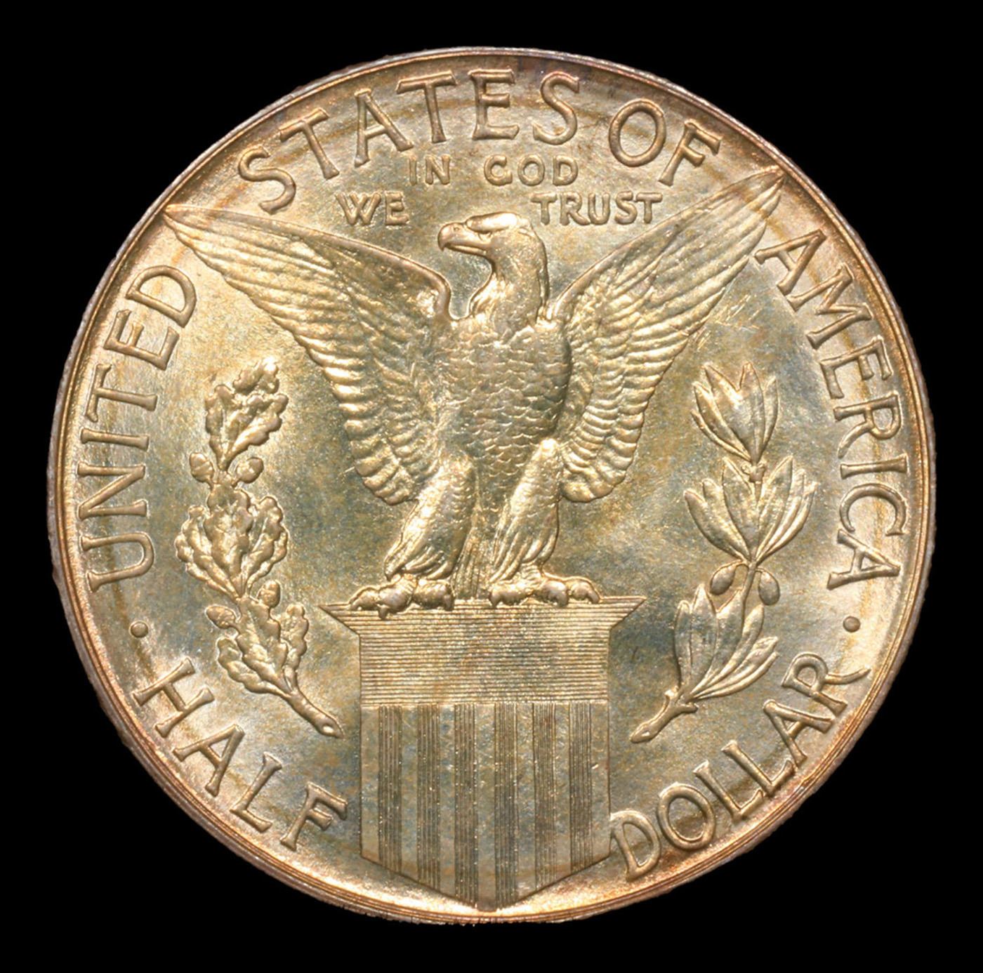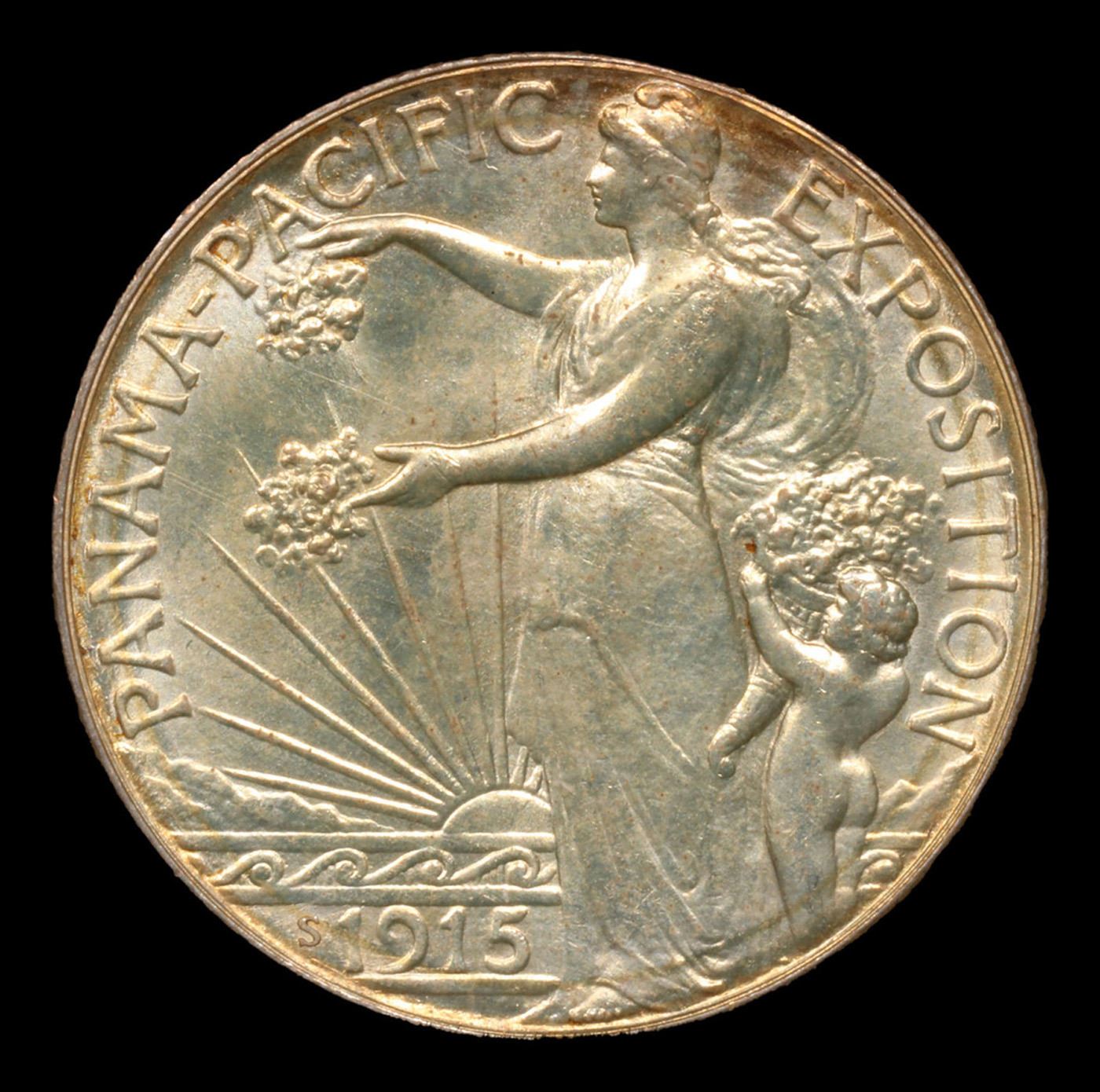 ***Auction Highlight*** 1915-s Panama Pacific Old Commem Half Dollar 50c Graded ms66 By SEGS. The 1915 Panama Pacific Half Dollar represented only the second commemorative silver half dollar issued by the United States Mint. Although this would later become the most frequent denomination for classic commemorative coins, the earlier issues took place across a range of denominations. The program of five commemorative coins issued for the Panama Pacific International Exposition included two versions of a $50 gold piece, a gold quarter eagle, and a gold dollar.The half dollar featured the full length figure of the allegorical Columbia with rays of the sun and the Golden Gate in the background. Her arms are outstretched to scatter fruits and flowers. A cherub appears to her right holding a cornucopia. The obverse includes the “S” mint mark, as the coins were produced at the San Francisco Mint facility.The reverse of the Panama Pacific Exposition Half Dollar features an American Eagle with wings outstretched, perched on a shield. An oak branch and olive branch appears to each side to represent strength and peace. The words “In God We Trust” appear near the eagle’s head, representing the motto’s first appearance on a commemorative coin. The obverse of the coin was designed by Charles E. Barber, and the reverse was designed by George T. Morgan.When Examining the Pan Pac Half Dollar, Note that there is a Problem with Pan-Pac Halves in its Strike: Weakness is often Evident on Columbia’s Head, Cap, Arm and Body, also on the Eagle's Breast Feathers and Claws. Occasionally, Coins are seen with a Rim Indentation Near the Periphery on Each Side; this is a Mint Caused Problem and Should Not Be Factored Into the Grade. When Grading Lightly Circulated Examples, Friction is First Evident on Columbia's Shoulder and on the Eagle's Breast.