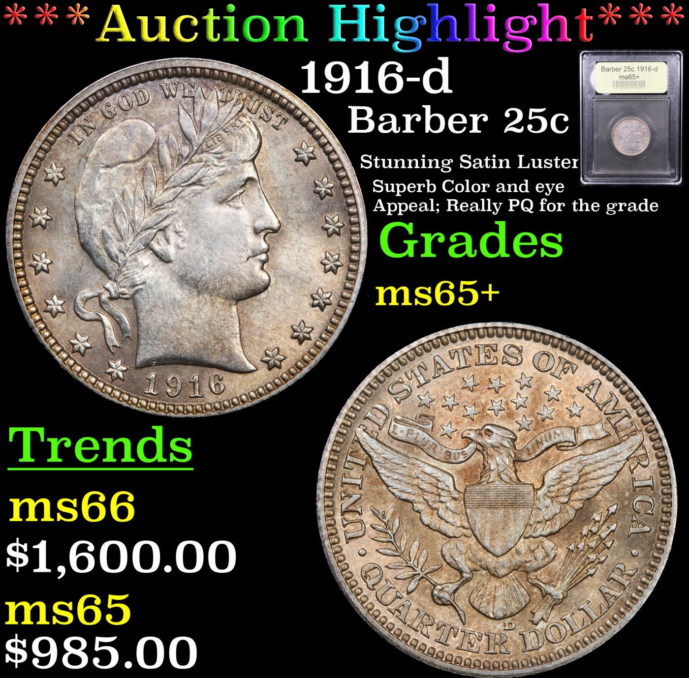 ***Auction Highlight*** 1916-d Barber Quarter 25c Graded GEM+ Unc By USCG. Final year of issue of the Barber series. A Corey's Pick, Bid to Win, Don't let it get Away Coin