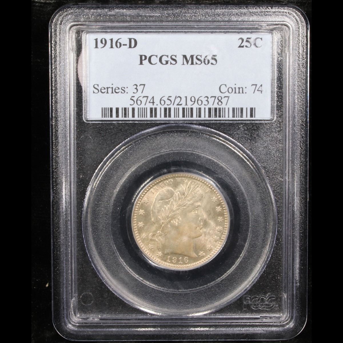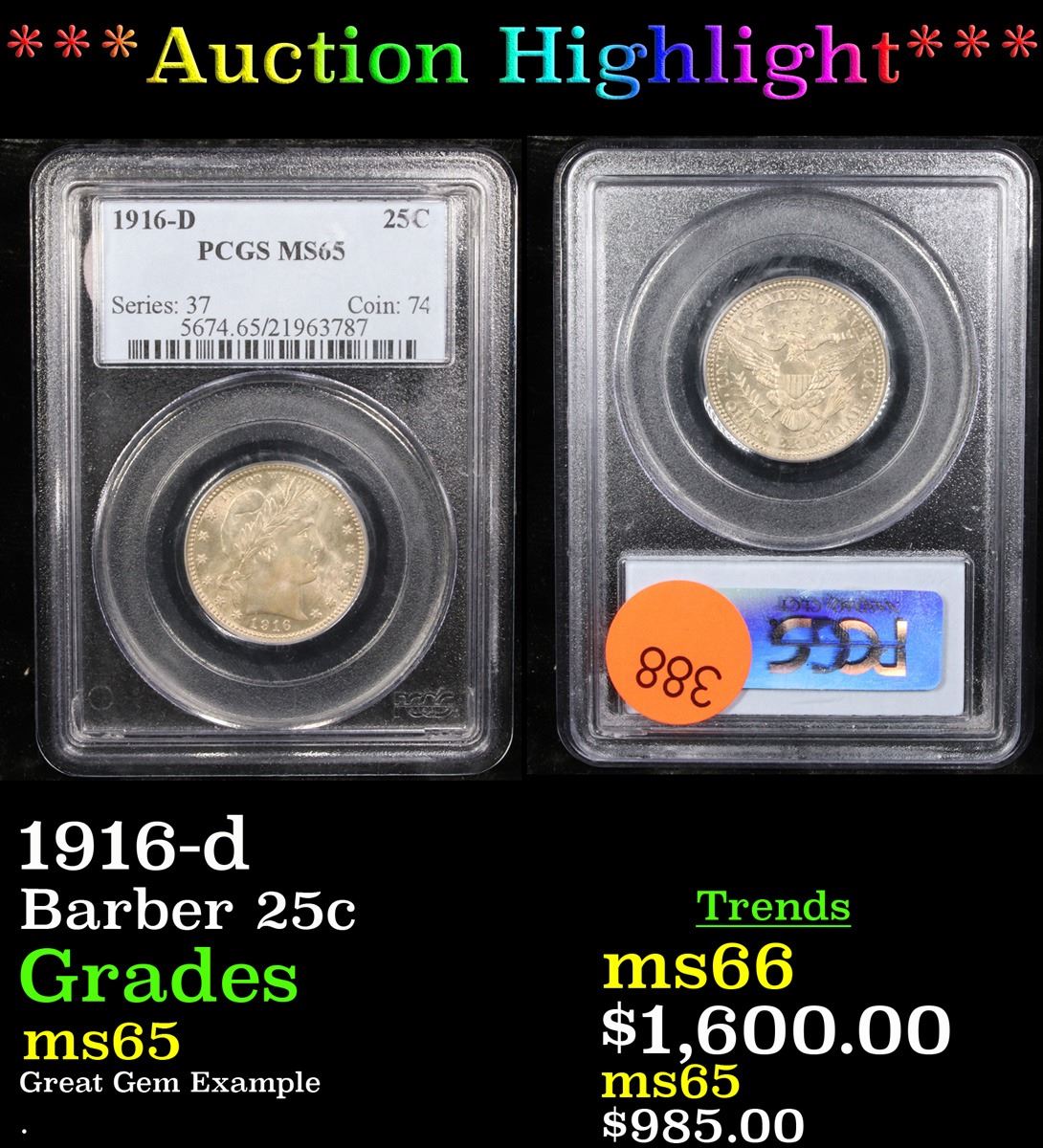 ***Auction Highlight*** 1916-d Barber Quarter 25c Graded ms65 By PCGS.  Final year of issue of the Barber series. 0