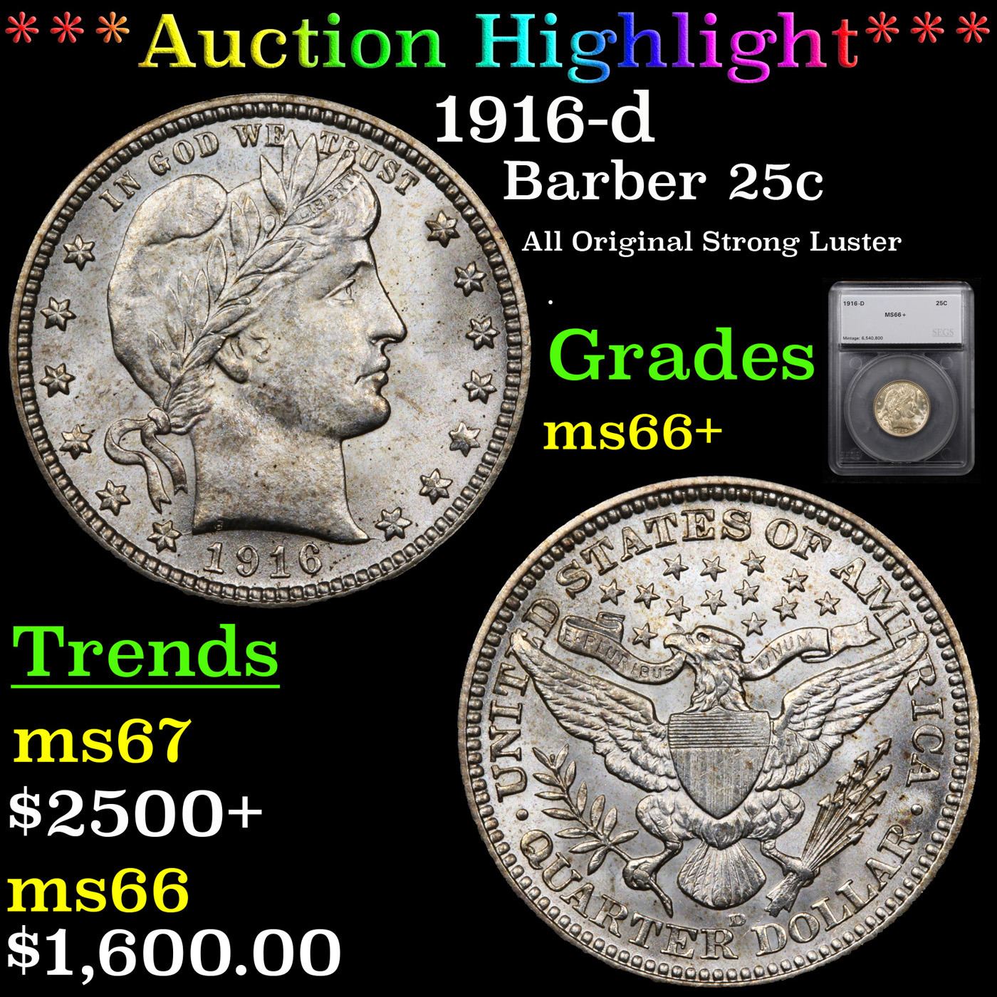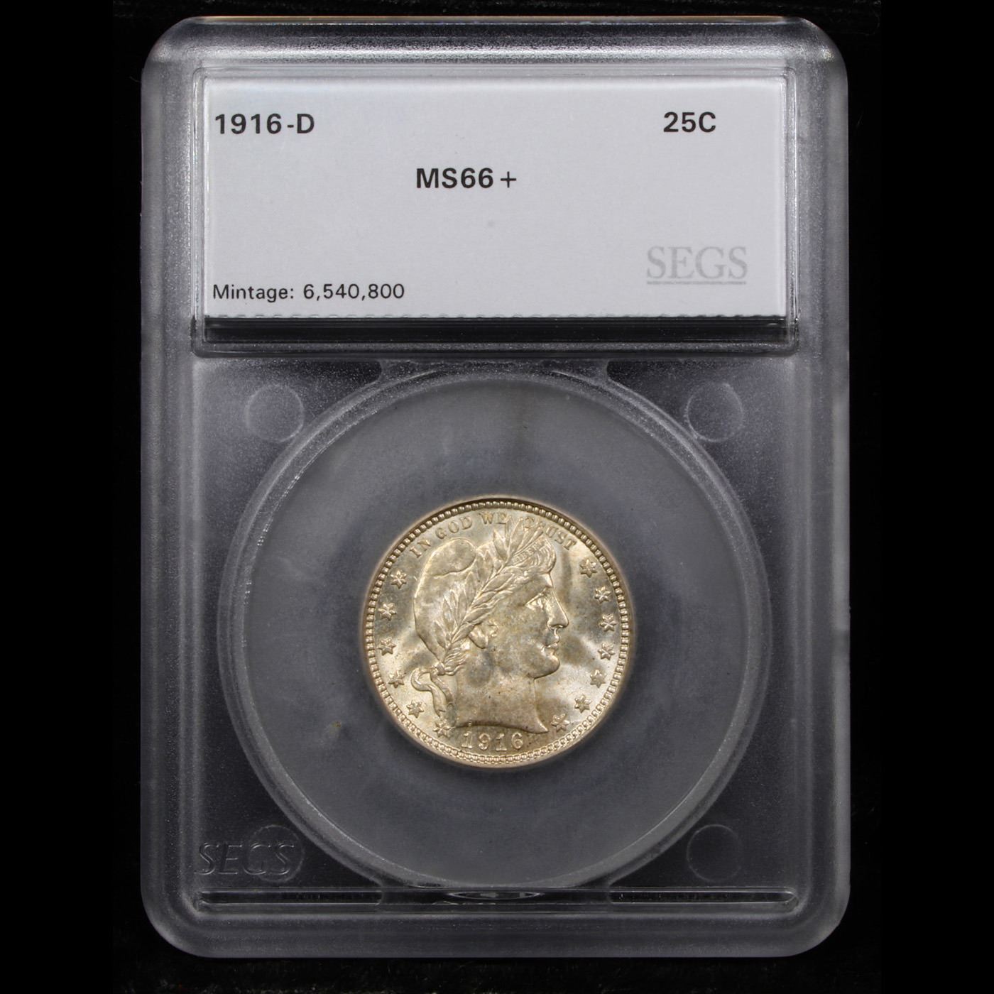 ***Auction Highlight*** 1916-d Barber Quarter 25c Graded ms66+ By SEGS. Final year of issue of the Barber series. A Corey's Pick, Bid to Win, Don't let it get Away Coin