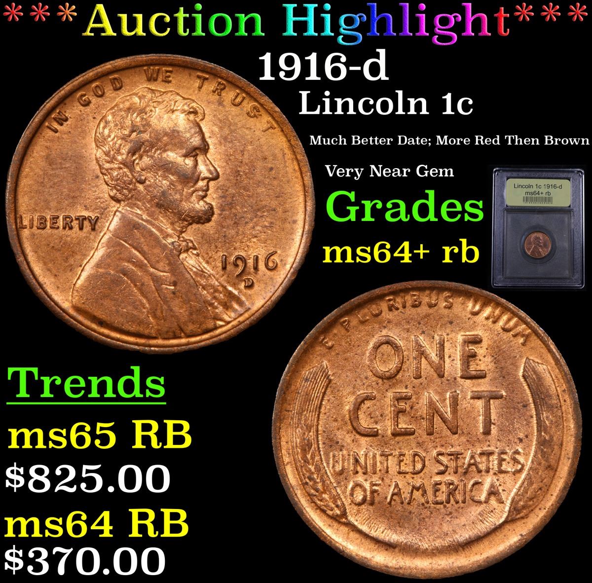***Auction Highlight*** 1916-d Lincoln Cent 1c Graded Choice+ Unc RB By USCG. A Corey's Pick, Bid to Win Coin