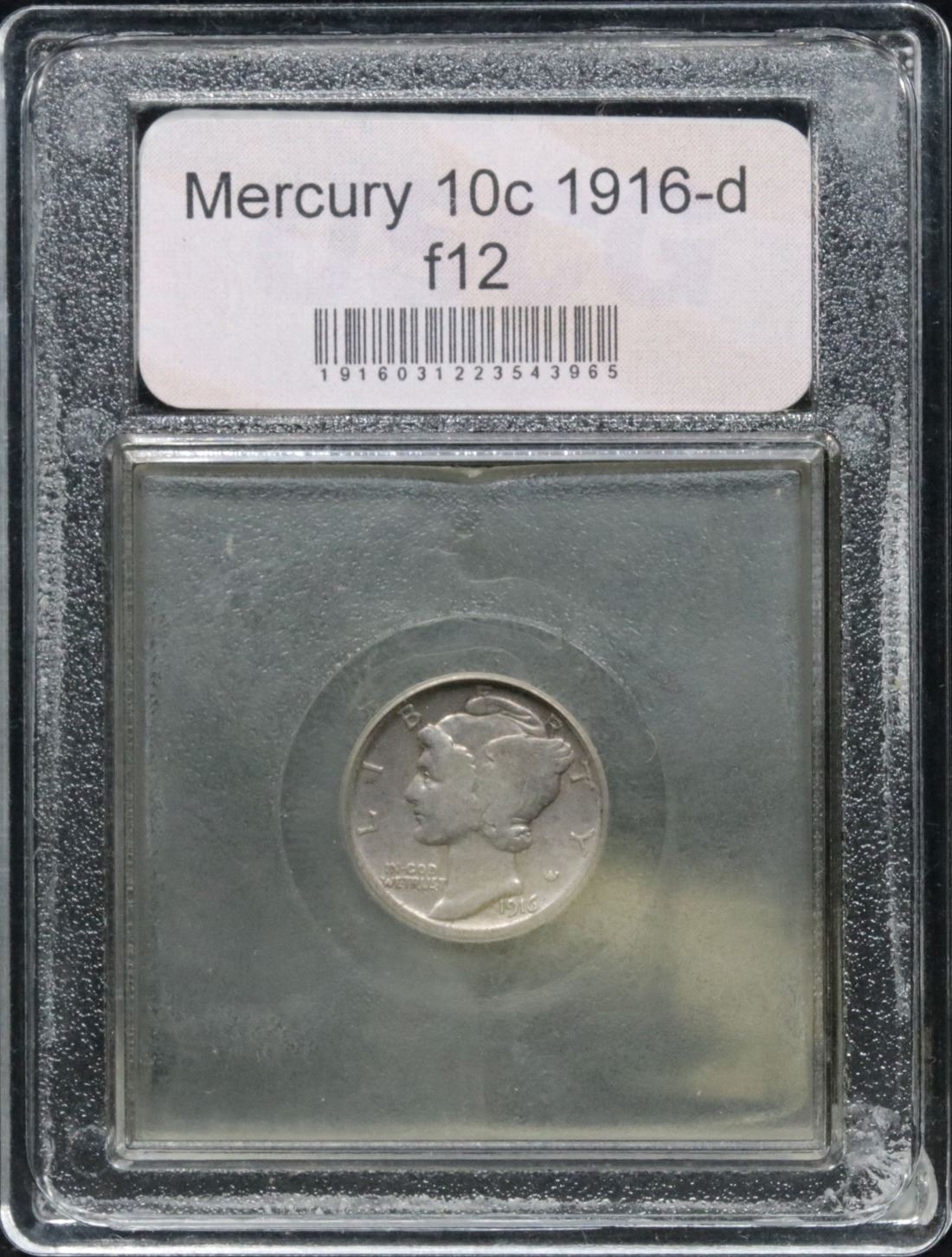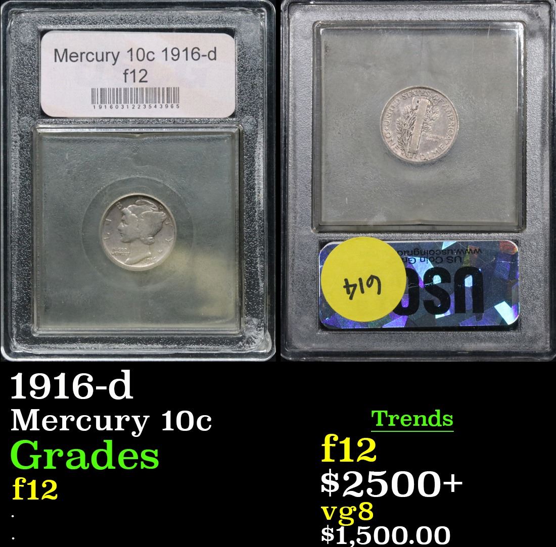 ***Auction Highlight*** 1916-d Mercury Dime 10c Graded f, fine By USCG.