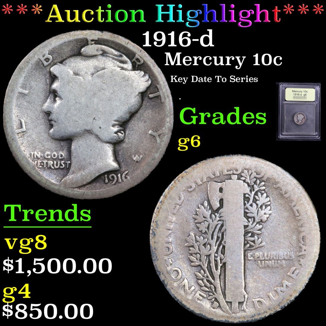 ***Auction Highlight*** 1916-d Key Date To Series . Mercury Dime 10c Graded g+ By USCG.         A Corey's Pick, Bid to Win, Don't let it get Away Coin
