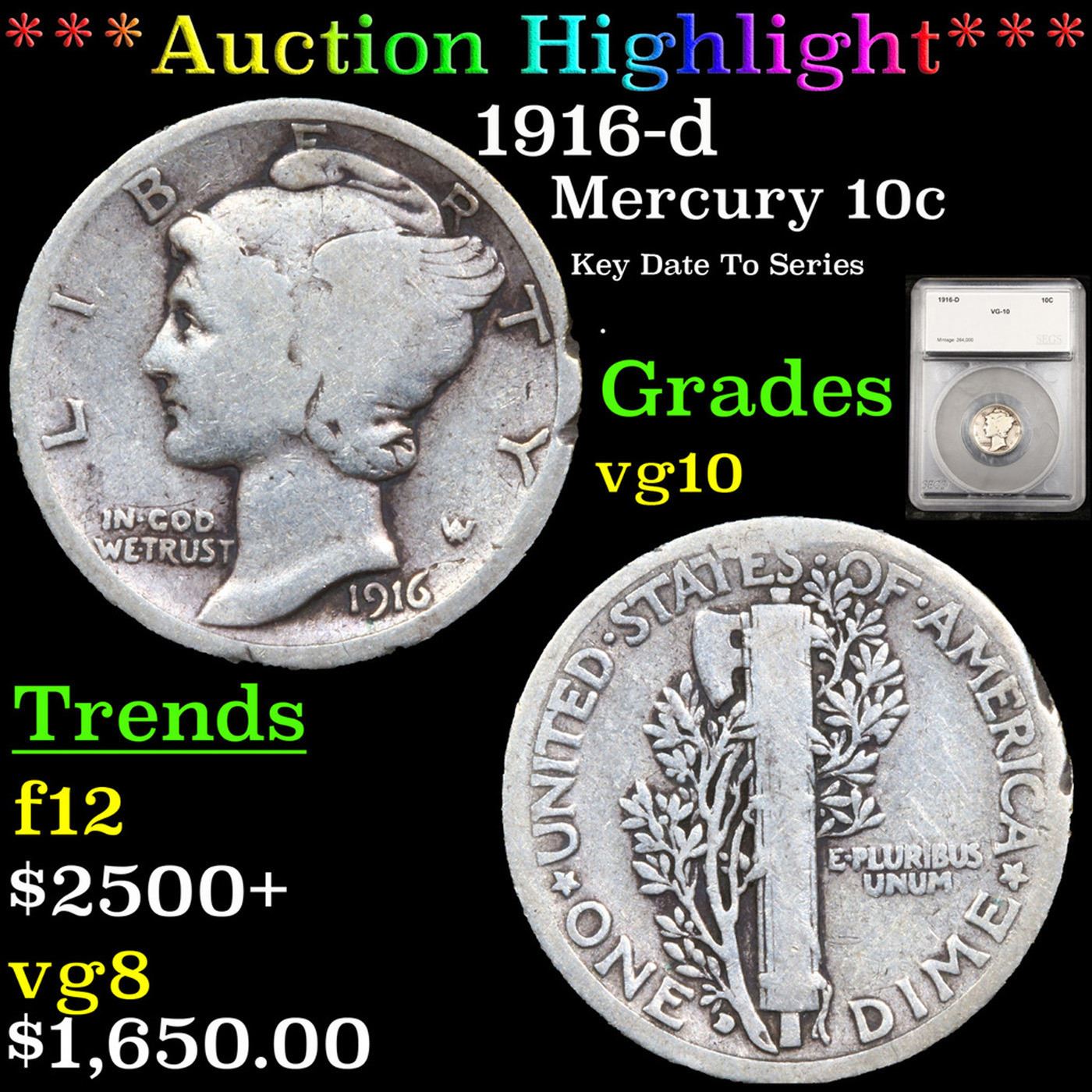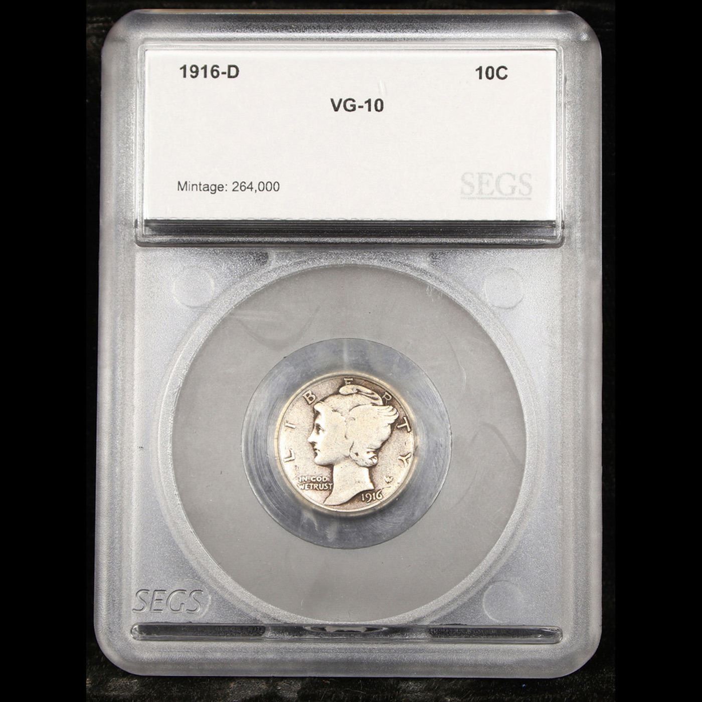 ***Auction Highlight*** 1916-d Mercury Dime 10c Graded vg10 By SEGS.
